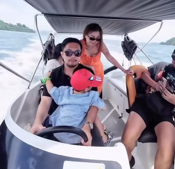 Saat menaiki perahu di Pulau Wayang, kemudi tampak dipegang oleh pria terdekatnya, Richard Refanov. Adzam terlihat begitu nyaman menempel di pangkuan Richard, menunjukkan kedekatan yang mulai terjalin.