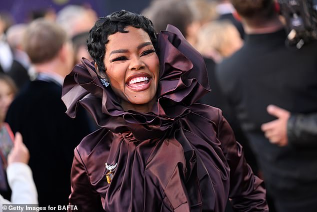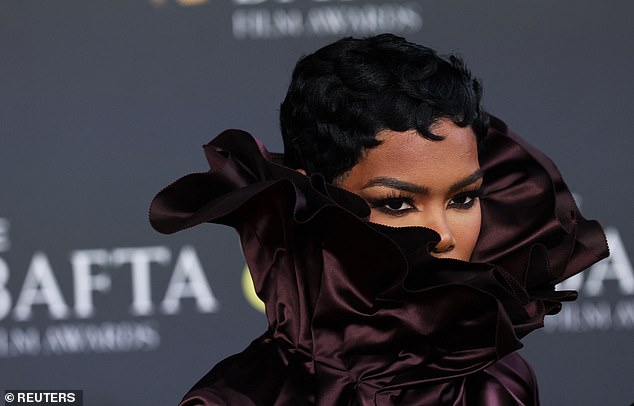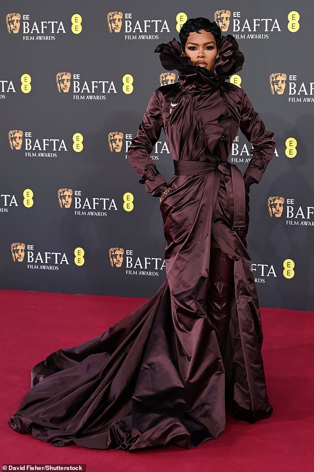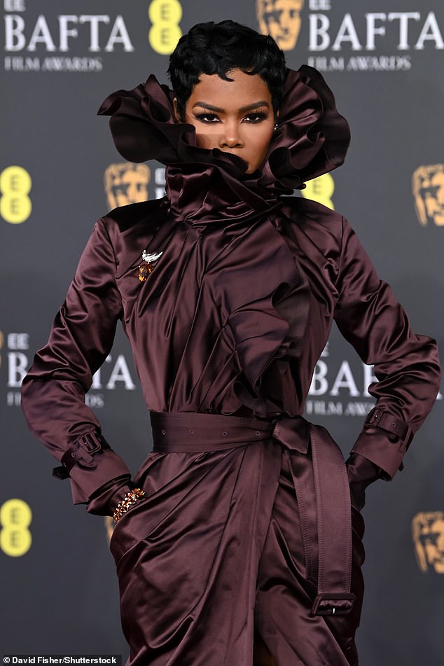 He was joined by his talented co-stars Chase Infiniti and Teyana Taylor. Infiniti, 25, is nominated for Leading Actress and turned heads in a figure-hugging burgundy strapless gown featuring a peplum hem, complemented by elegant heeled pumps and striking drop earrings. Taylor, nominated for Supporting Actress, opted for a captivating brown wrap dress that cinched her waist and boasted a chic frilled collar, ensuring she stood out from the glamorous crowd.