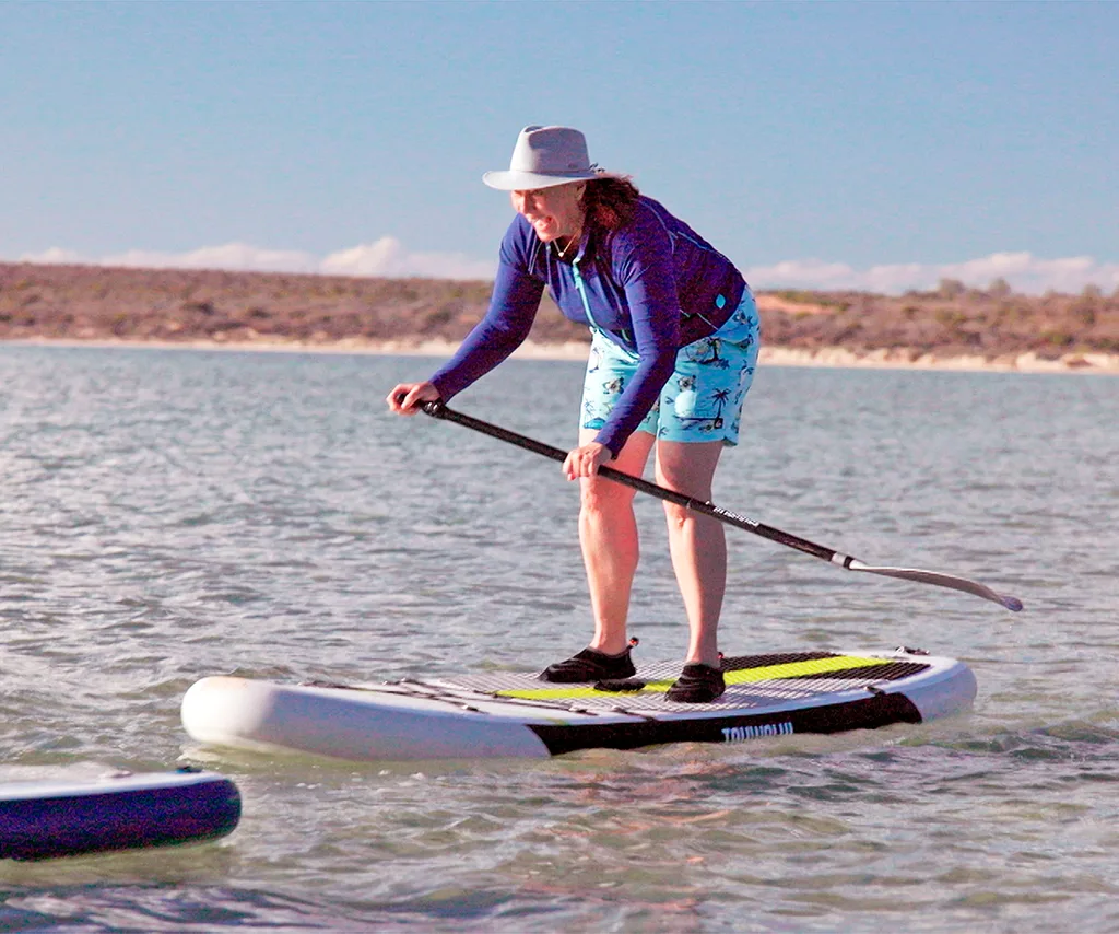 During her time in Shark Bay, Lisa also tried her hand at stand-up paddleboarding, even taking an unplanned dip. She embraces a philosophy of happily being “mediocre at everything!” Lisa laughs, “I just love giving it a go.” She recently accepted an invitation to surf from an 18-year-old professional surfer featured in an upcoming story. “Yesterday I was with an 18-year-old female pro surfer who we’re featuring in our story and she said to me, ‘Do you want to go and have a surf?’ And I said, ‘Oh God, it’s 18 years since I took lessons at Bondi Beach just because I had a bit of a crush on a young surfie dude.’ She’s like, ‘Come on!’” Though she didn’t manage to stand up, the experience was thoroughly enjoyed.