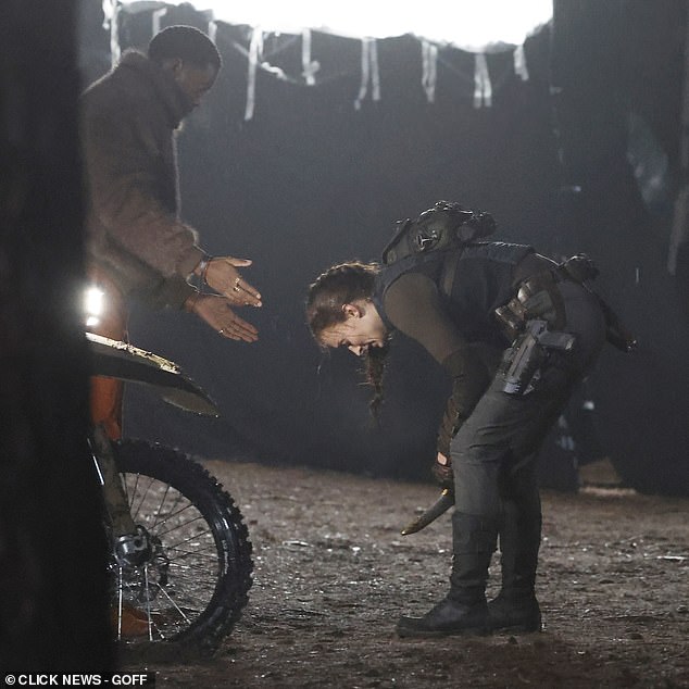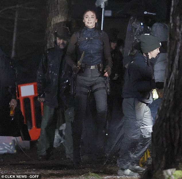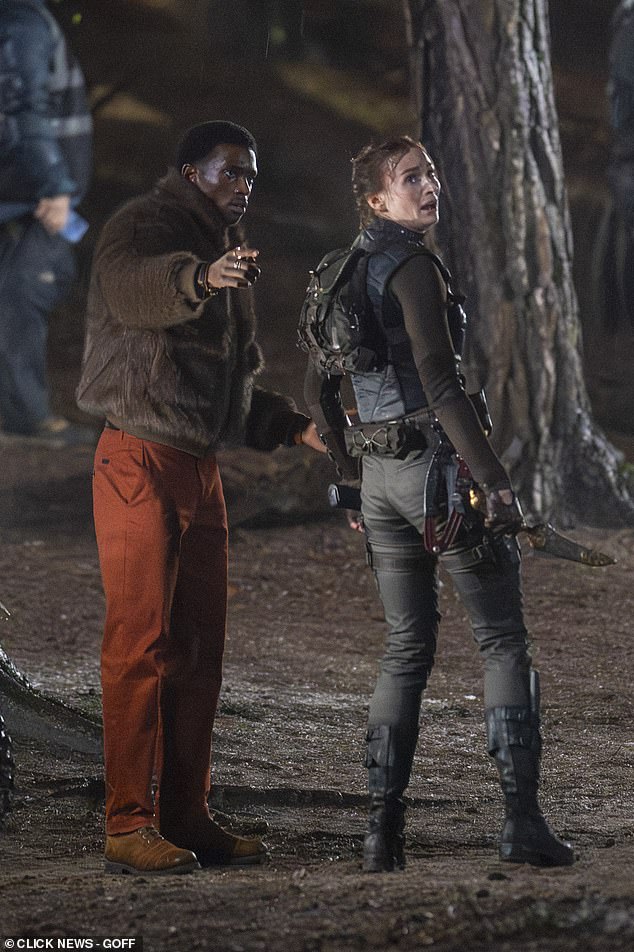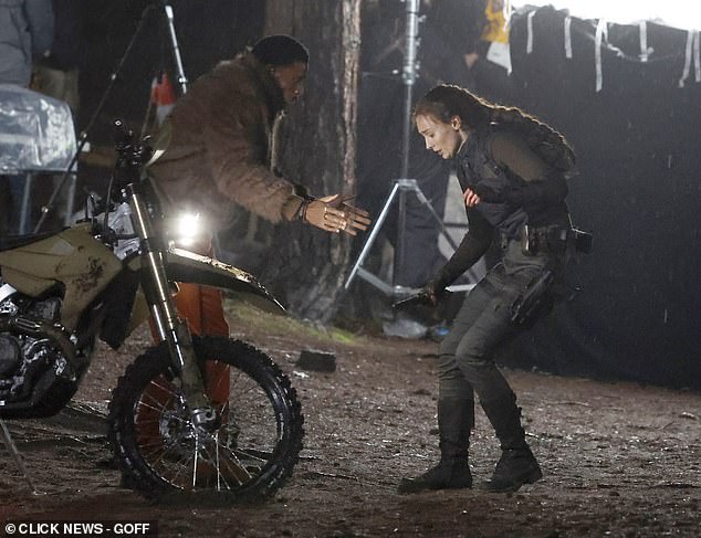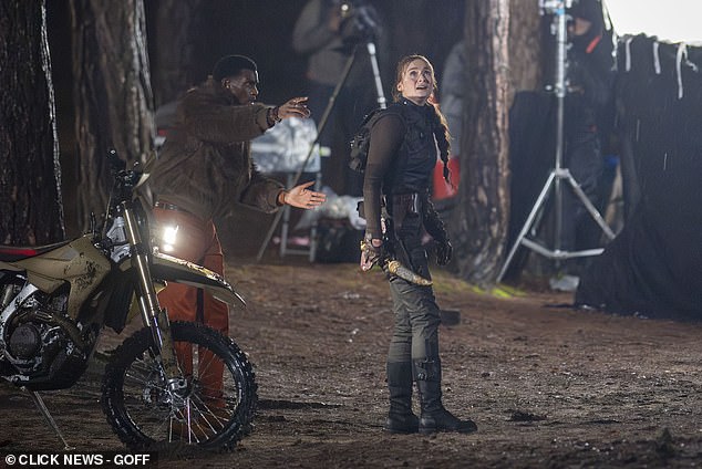 On a damp Wednesday evening, Turner, 29, was spotted braving the elements as she filmed a high-octane knife fight sequence for the upcoming Amazon Prime Video production. The scene saw her engaged in a fierce struggle, wielding a blade amidst the trees, before making a swift escape on the back of a motorbike, expertly ridden by her co-star, Martin Bobb-Semple, 28. Bobb-Semple is set to play Zip, Lara Croft’s trusted tech support and close friend in the series.