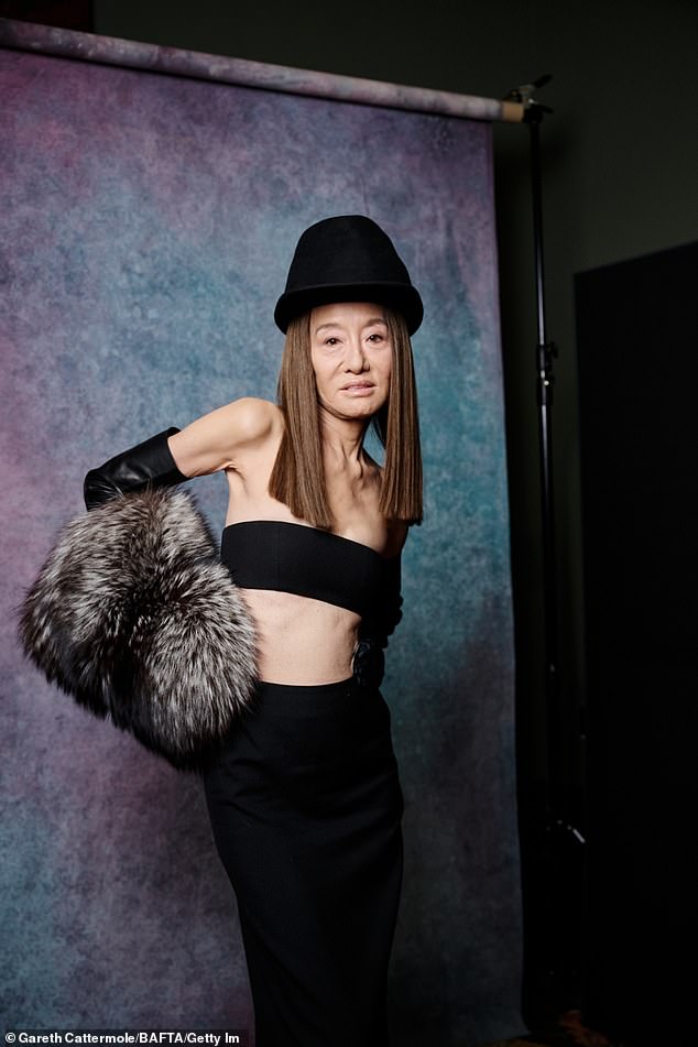 The exclusive event, held at the prestigious National Portrait Gallery, brought together stars and industry heavyweights ahead of Sunday’s much-anticipated award ceremony. Wang was a vision in a black bandeau cropped top paired with a matching flowing maxi skirt. The outfit perfectly showcased her toned physique, a testament to her dedication to well-being and her enduring sense of style.