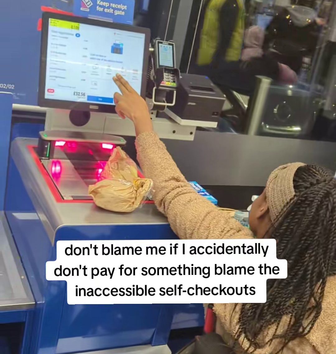 “Most times when I go out, I try to pay for things with self-checkout, and it’s quite hard to scan things because of the angle,” Toyin explained. The robotic voice prompting customers to “finish and pay” is often followed by the stark reality that the card machine is positioned too high for her to reach comfortably or effectively. This fundamental design flaw means that even a simple transaction can become a significant undertaking.