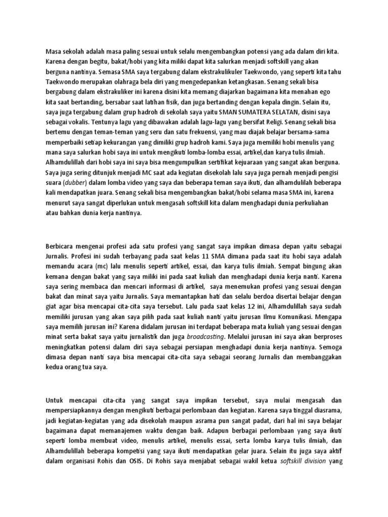 - Jelaskan bakat atau hobi yang Anda miliki selama sekolah.
