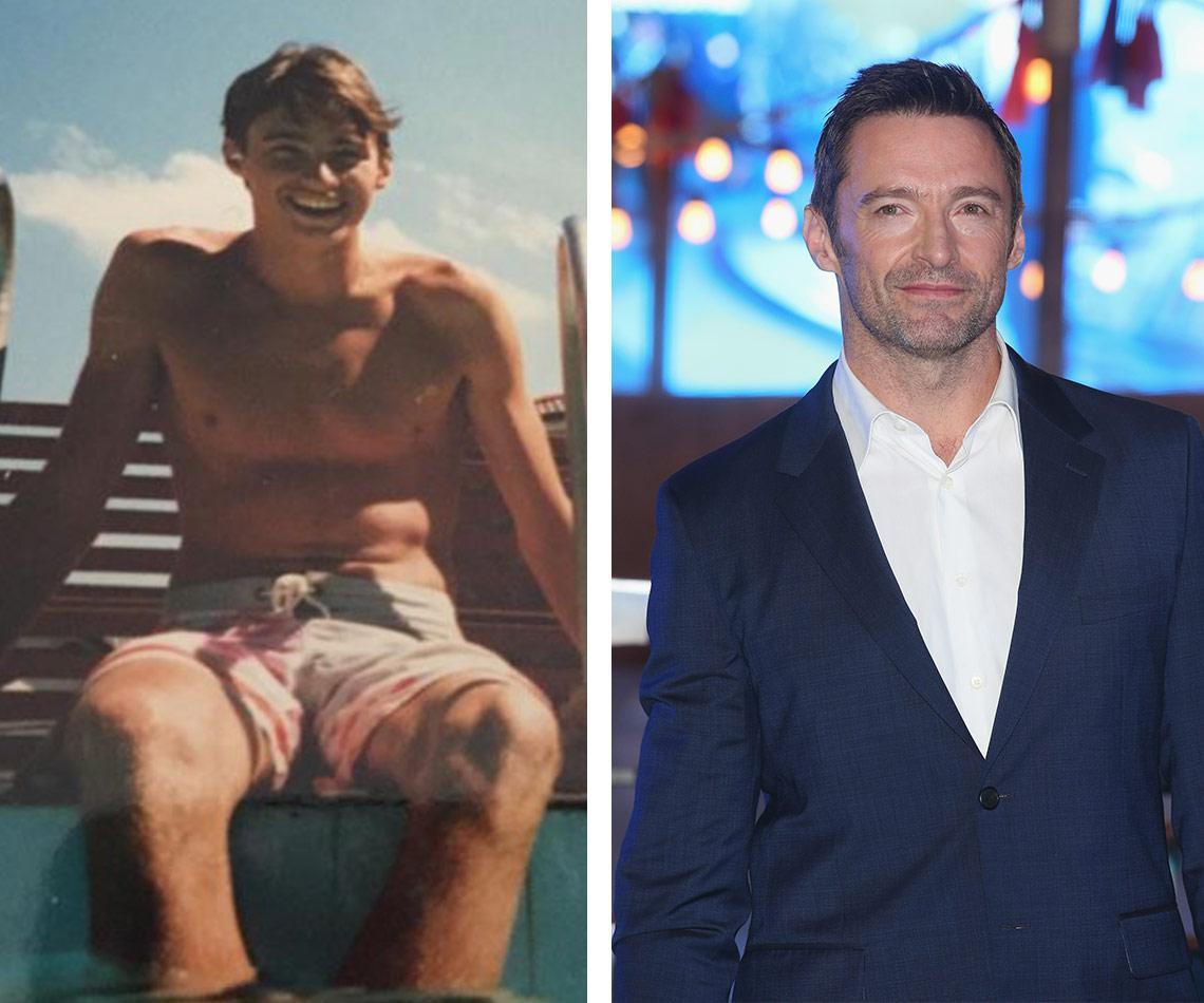 Hugh Jackman embraces the warmer months by sharing this shirtless pic (L) “Summer Lovin in the mid-80s. #throwbackthurday,” he captioned it.