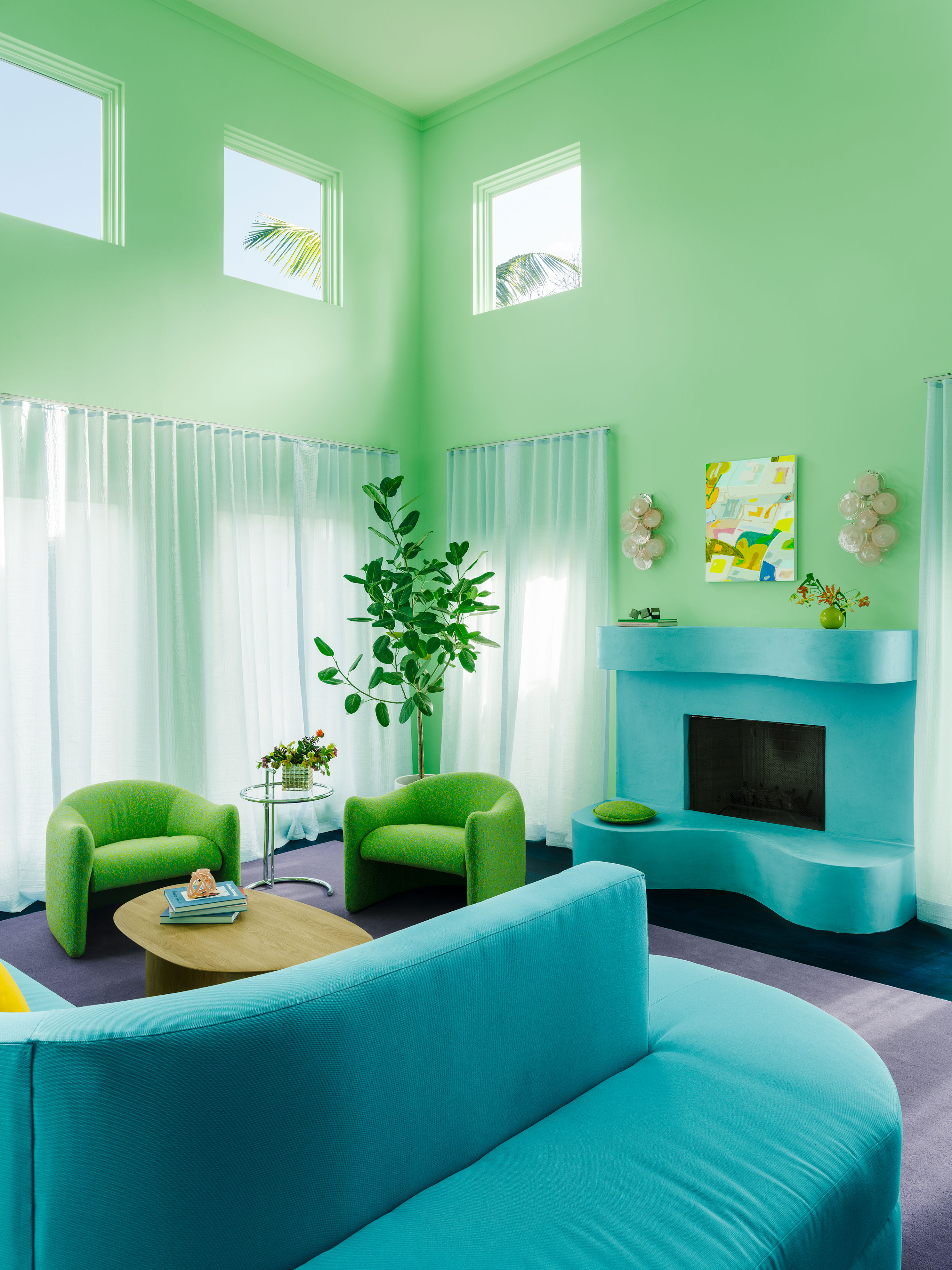 “Aim to go out of your comfort zone and choose a color palette that keeps things interesting,” suggests Another Human’s Leah Ring. “Using an unexpected combination is a shortcut to making a space feel fun and lively.” Opt for color where others might rely on a neutral failsafe—a colored sofa, ceiling, or tiled floor, for example. It’s less about coloring wildly outside the lines and more about designing as though your white, gray, or beige crayons are simply unavailable.