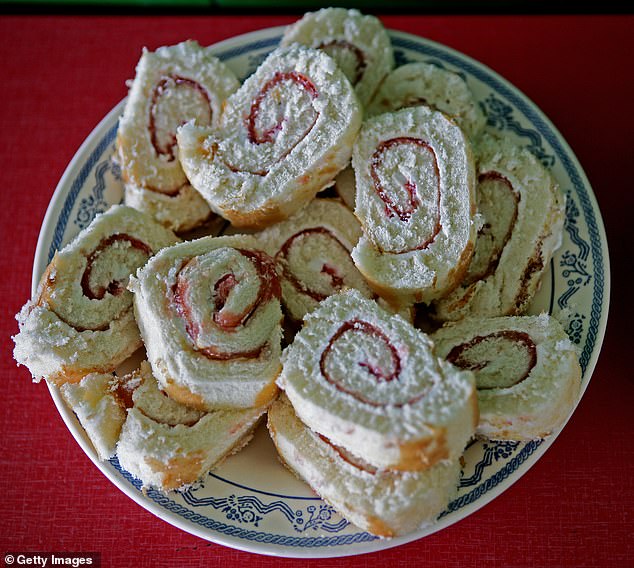 Jam Roly-Poly: A jam roly-poly was always a highlight on the school menu. Made from steamed suet pastry swirled with sticky raspberry jam, it was typically served with warm custard.