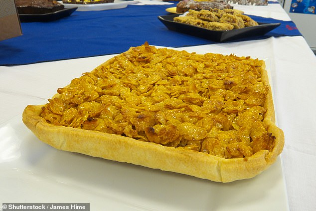Cornflake Tart: A charming sweet treat, the cornflake tart combined short-crust, strawberry pastry jam, cornflakes, and golden syrup. It was often enjoyed with a generous helping of custard.