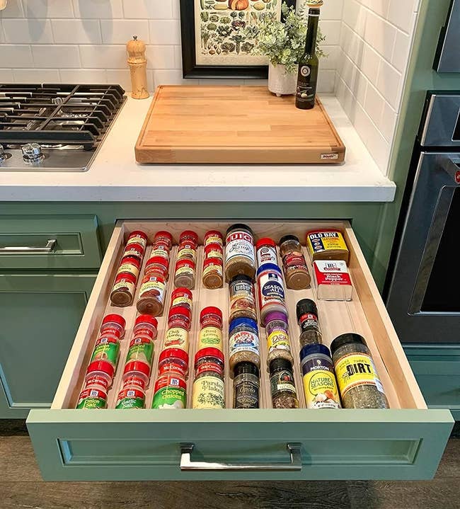 “This is hands down the best product on Amazon for organizing spices! This liner is a thick, high-quality liner that you cut to fit your drawer size, and it’s incredibly easy to work with. The spice bottles stay put and don’t roll around, making the drawer much more functional.” — Arpita