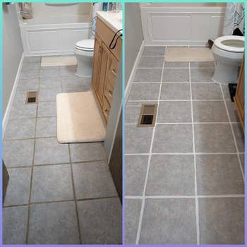 “This stuff is banging. It looks like normal grout after it dries. If you have areas of your grout that have faded, become discolored, or are moldy, this really brightens up those lines and brings your bathroom back to life. I used this all over my shower, and the difference is night and day. Can’t go wrong for the price, IMO. A DIY dream.” — Rytaco
