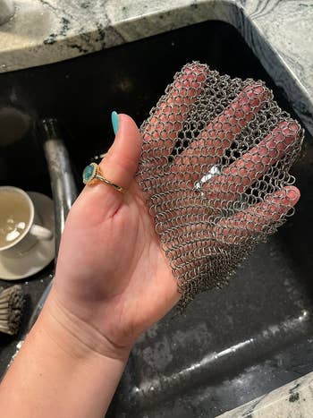 “I could hardly believe my eyes. In just a couple of minutes, with very little effort on my part, my gritty cast-iron skillet was clean! Shocking because so few products live up to the promises of their sales pitches. On top of that, the chain mail is comfortable, even pleasant, to hold. Made me think of my childhood Slinky.” — Diane
