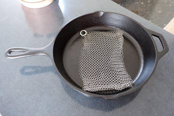 A stainless-steel cast-iron cleaner — this chainmail will get the grime and grit off of your cast-iron cookware without ruining its seasoning.