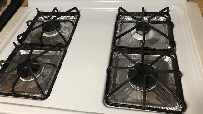 “One day, I will be the happy owner of a flat surface oven/stove top! But until then, these are the best at keeping your stovetop free from food and grease spills and caked-on messes. They’re cheap, so cleanup is a breeze. When it’s dirty, just remove it, throw it away, and replace it with a new one. It makes cleaning the stove top so easy!” — Melanin Monroe