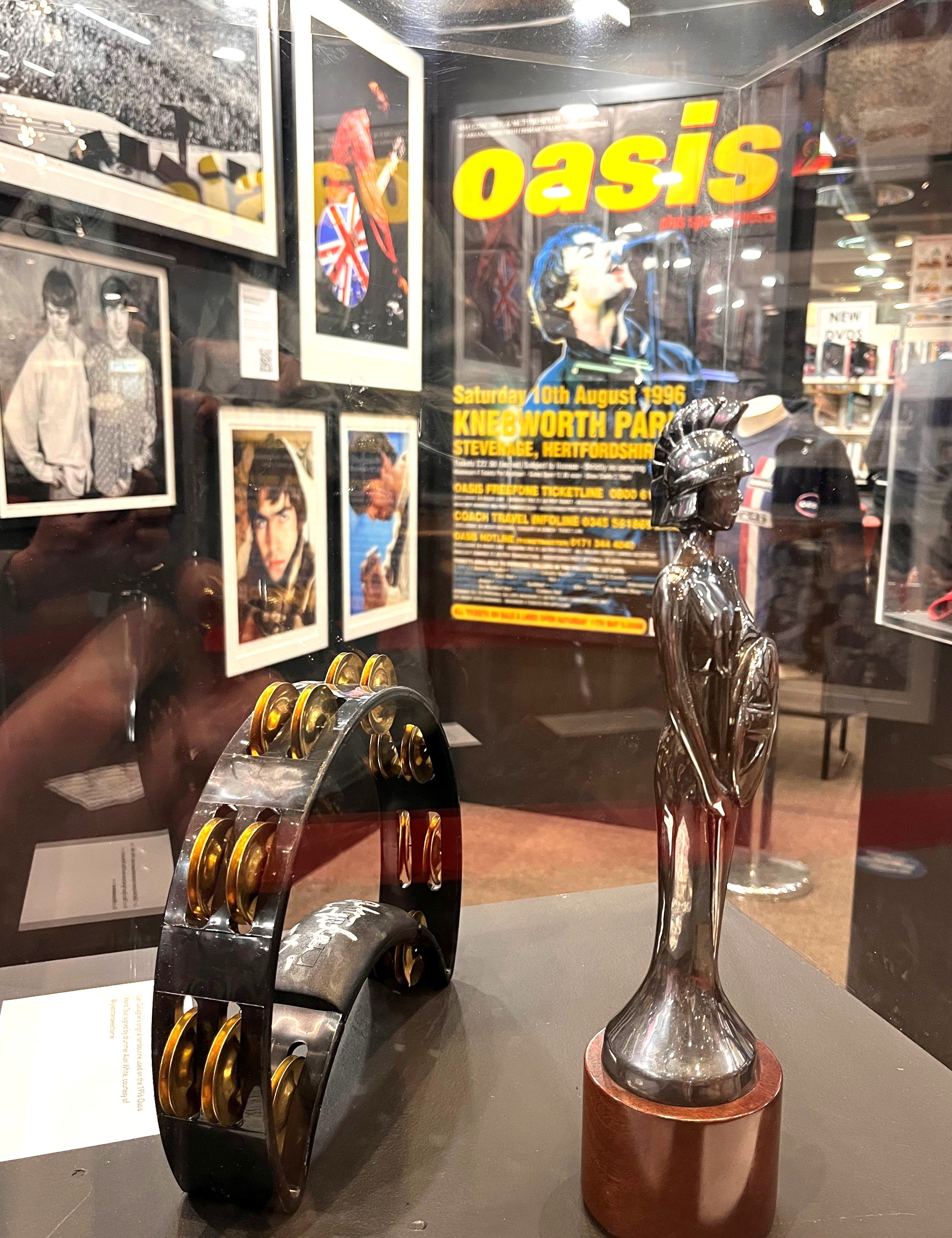 The 1996 Brit Award, loaned to the exhibition from the British Phonographic Industry, was presented to winning artists of that year. Among the recipients were Oasis, fronted by Liam and Noel Gallagher, who won three awards, as well as Annie Lennox, Supergrass, Paul Weller, Take That, David Bowie, and Michael Jackson.