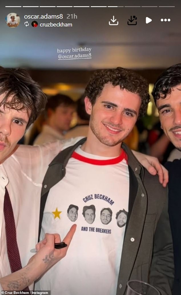 David and Victoria’s youngest son, Cruz, also joined in on the birthday festivities by sharing a fun photo with Oscar. The image showed Oscar wearing a T-shirt from Cruz’s band, The Breakers, as they posed backstage after the musicians’ London gig.