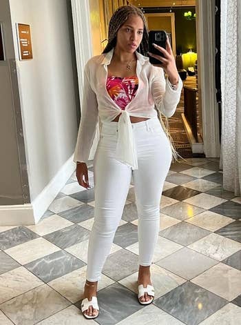 “I’ve worn these everywhere!! They are super comfy and lightweight, go with everything, and run true to size. I got them in white as well, and I’m obsessed. I’ve been to a concert in them, driven in them, and also, I went on vacation recently and walked all over the city, went out, and danced at bars. I’ve never had a pair of heels that are so comfy! Seriously, so worth the money.” — Courtney Wilson