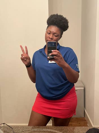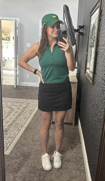 “Finally found the perfect length skirt that doesn’t ride up and is so comfy! The fabric is super stretchy, and the pockets are so convenient. It is a lightweight skirt, and you can dress it down or dress it up!” — Kelley