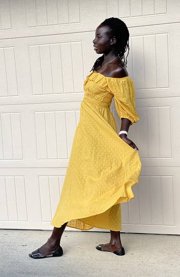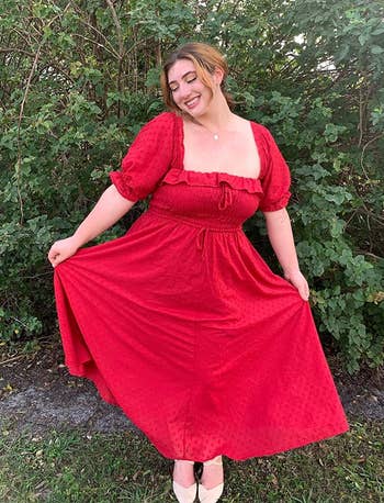 - A flowy maxi dress that’ll have you rolling up to brunch in style. The gorgeous balloon sleeves and ruffled neckline give off such whimsical and romantic vibes, and with all the adorable colors it comes in, you really can’t go wrong, can you?