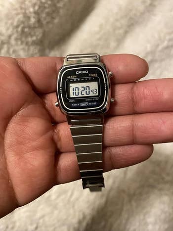- Or a Casio watch for those who can’t be bothered to read an analog watch. Beloved by over 14,000 reviewers, this retro watch is water-resistant and incredibly durable, so you’ll have it in constant rotation forever. and ever. Not only does it display time, but it also has a countdown timer, a stopwatch, and a calendar! We love a multifunctional product.