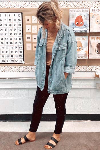 “Super cute oversize denim jacket that fits true to size. The fabric is soft and very comfortable. It’s also versatile with the ability to dress it up or down. Overall, I highly recommend having this in your closet.” — Lydia L