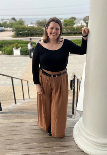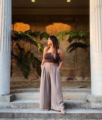 - A pair of high-waisted palazzo trousers that are far superior compared to plain ol’ trousers. They’ll ~zhuzh~ up any outfit, whether it’s casual or dressy, thanks to their pleats and flowy hem. Plus, it’s hard to find good quality pants for under $50 — well, except for these!