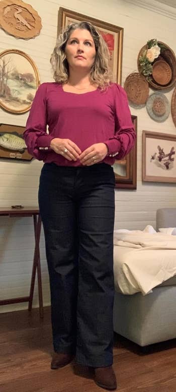 “I love these pants! They look like they’re from a nice women’s work clothing store. The elastic is a lifesaver for when I wear these to a big meal. And the cut and flow of the pants’ legs look super professional. Plus, pockets!! I’ve worn these to social events and to work, and get compliments on them in both scenarios. No one could believe I got them on Amazon. Super cute, high-quality material and appearance, and great value for a comfy, versatile pair of pants.” — AE