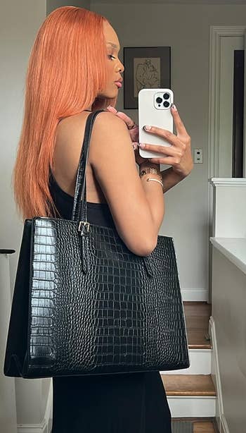 “Great quality bag! I’ve used it daily for two years at work, often carrying heavy items, and it’s held up remarkably well with minimal wear and tear. It’s a fantastic [alternative] for the Béis Work Tote—stylish, durable, and looks far more expensive than it is. I’ve received numerous compliments on it and am now purchasing my second one.” — Jordyn Justus