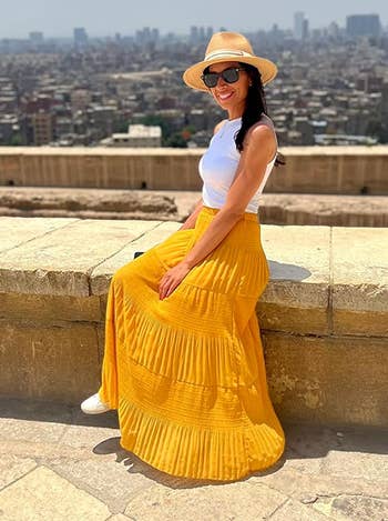 “I ordered a size small in yellow, and I absolutely love the color. This skirt is so soft and fits perfectly. I really like how the fabric flows, adding a beautiful, feminine look. Perfect summer skirt that can either be dressed up or dressed down.” — Sally
