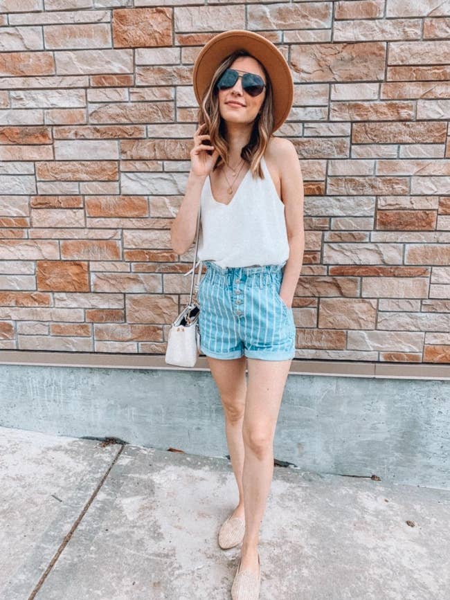 - A breathable cami guaranteed to become your go-to top because it pairs well with any skirt, shorts, or pants. With spaghetti straps, a deep V-neck, and flowy fabric, it has everything you need in a summer closet staple; plus, it has an opacity layer underneath so you can go bra-free — yep, it’s not see-through!