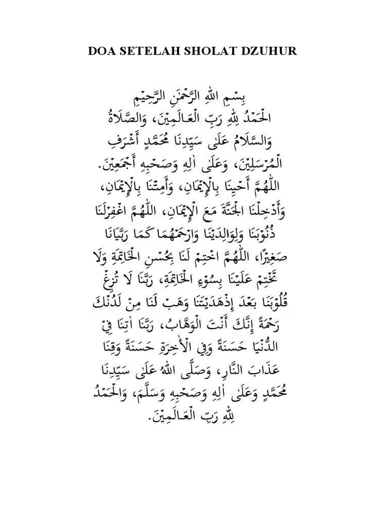 Terjemahan Doa Setelah Sholat Dzuhur