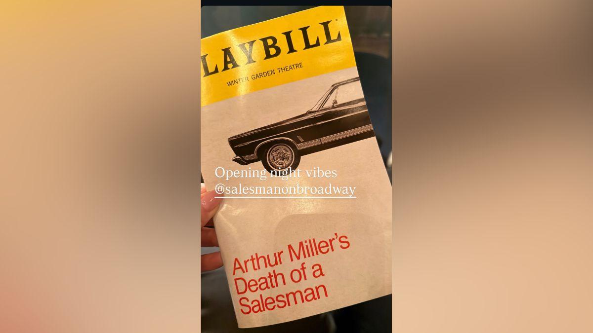 In one Instagram Story, Kelly snapped a photo holding the Playbill for Arthur Miller’s Death of a Salesman, alongside the text: “Opening night vibes.”