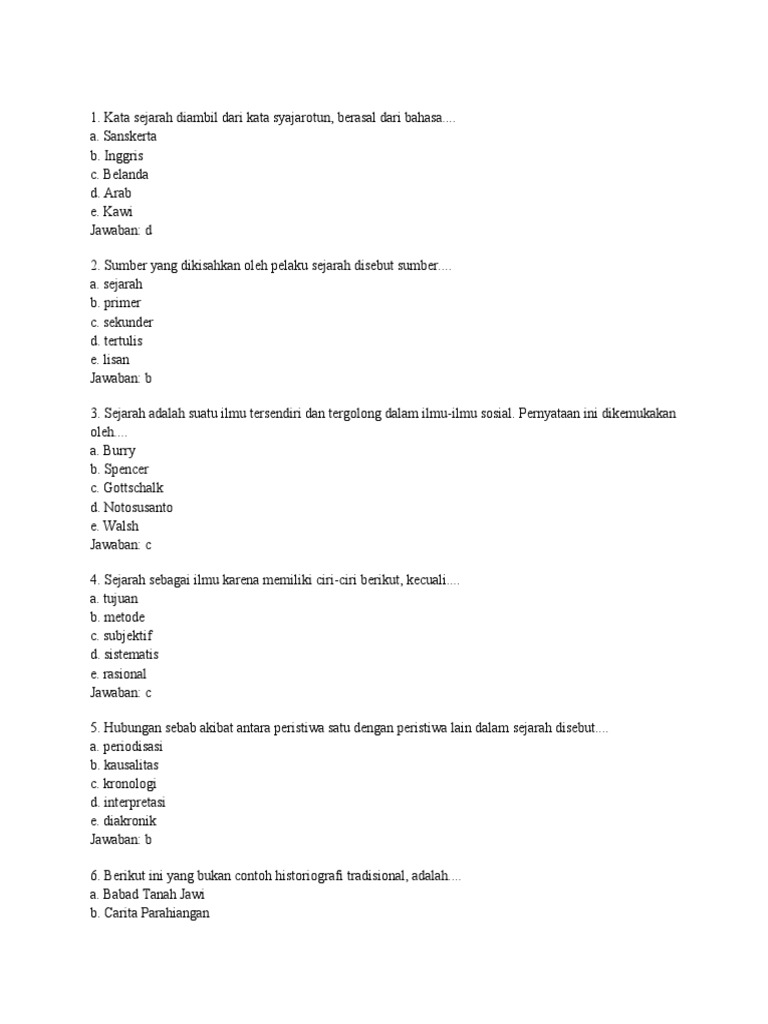Berikut adalah latihan soal Sejarah untuk siswa kelas 10 SMA/MA yang dapat digunakan sebagai persiapan menghadapi ujian Sumatif Akhir Semester 2 (SAS). Soal-soal ini sudah dilengkapi dengan kunci jawaban, sehingga siswa bisa belajar dan berlatih secara mandiri di mana saja.