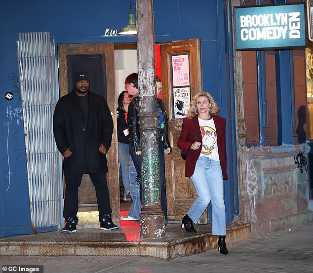 Diaz appeared in great spirits as she paused to chat with members of the production team. For her final look of the day, she looked stylish in a red blazer paired with a white graphic T-shirt and light-blue denim jeans as she left what appeared to be a comedy club.