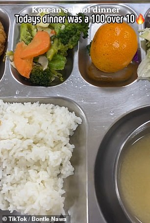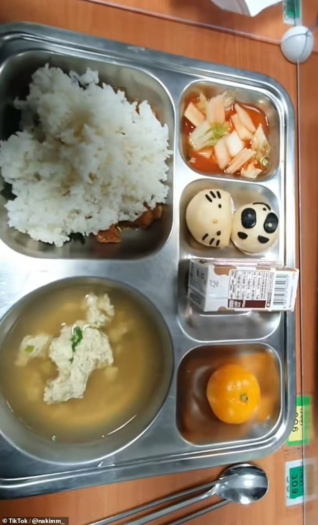 On TikTok, South Korean student @nakimm_ has shared clips of her high school lunches, showing a hearty serving that includes rice, soup with chicken, kimchi, steamed buns, chocolate milk, and an orange. Similarly, @heners332, a Brit living in Korea and working as an English teacher at an elementary school, shared his meal, which featured a chicken mayo and rice dish, seaweed, and miso soup.