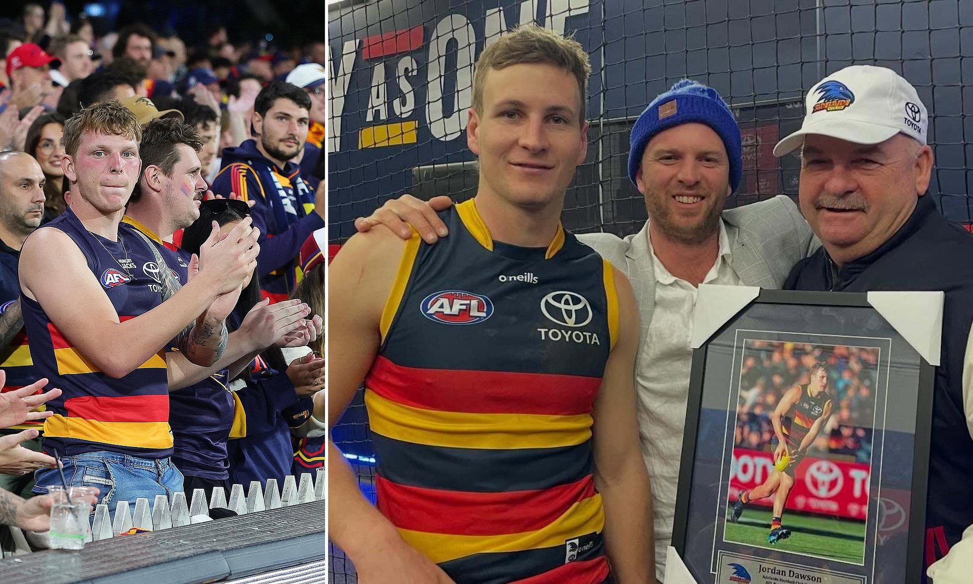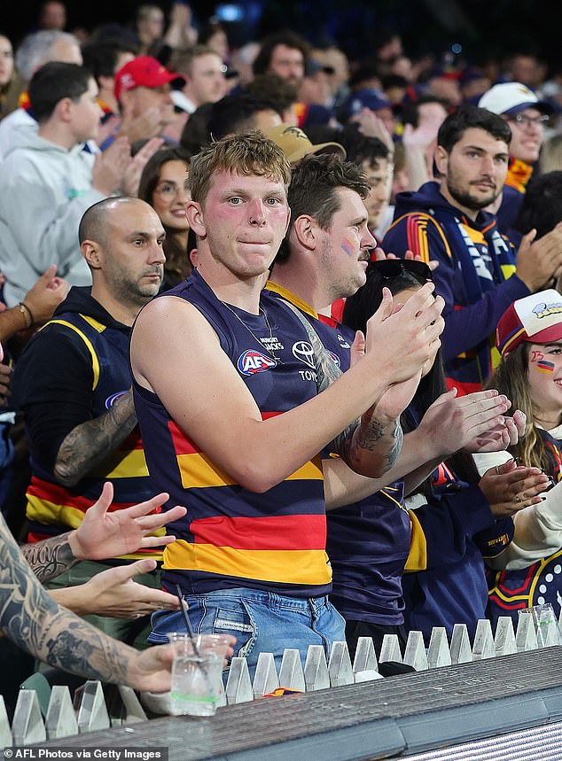 Dawson did not play in Adelaide’s round six clash against St Kilda, instead attending the match at Adelaide Oval where he watched from the stands alongside his wife. The 29-year-old was seen in the rooms with teammates before the game as the club prepared for the fixture.