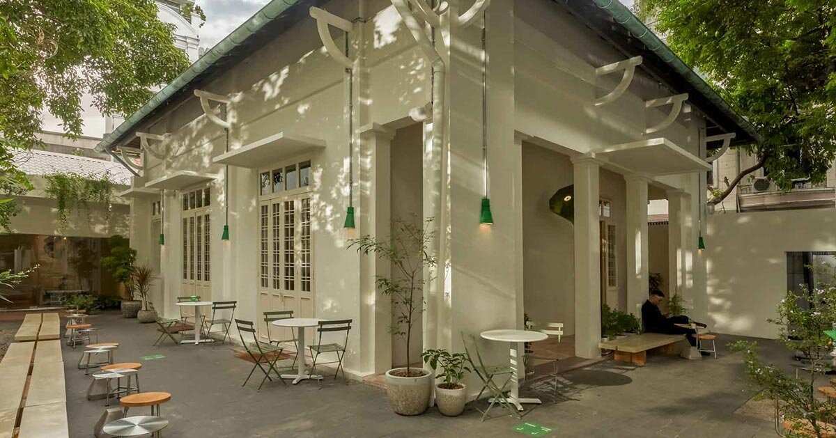 Proyek Matte Teabar Flagship oleh The Lab Saigon ini menunjukkan bagaimana sebuah vila Prancis berusia lebih dari seabad di Ho Chi Minh City dapat dihidupkan kembali menjadi ruang teh kontemporer. Halaman dengan bangku rendah menjadi penghubung alami antara gang dan interior, sementara papan kecil bergambar kucing hijau menjadi penanda masuk yang sederhana.
