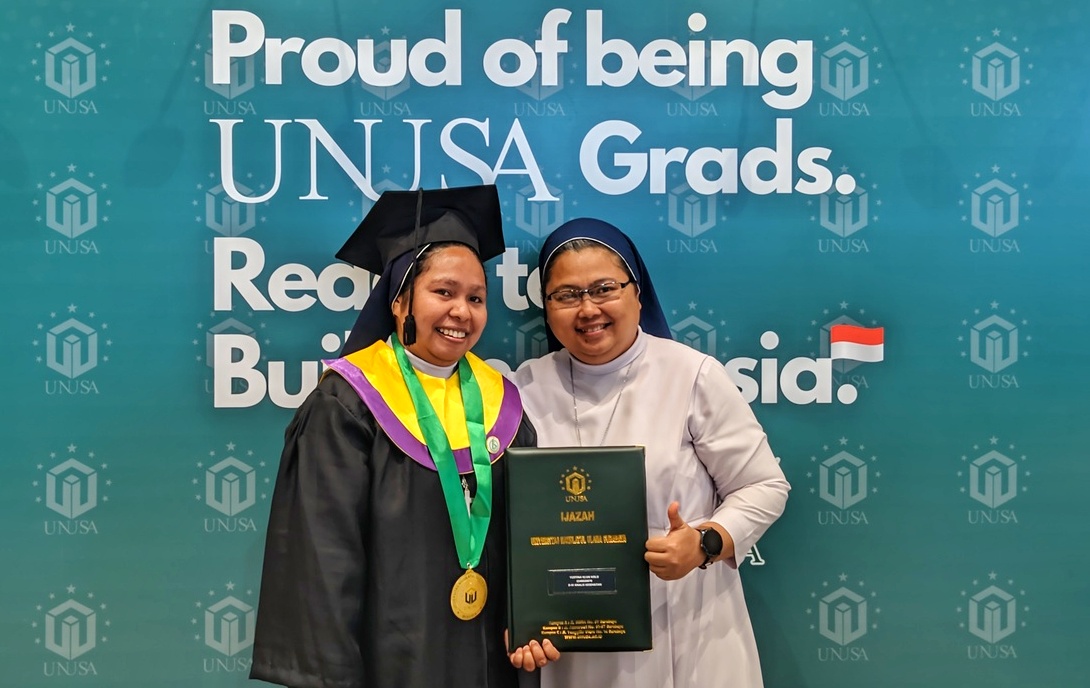 Momentum wisuda yang digelar Unusa pada Rabu (22/4) siang menjadi panggung nyata komitmen kampus dalam menjunjung nilai inklusivitas. Salah satu sorotan datang dari Suster (Sr) Yustina Klun Kolo, SSpS, lulusan Program Studi D4 Analis Kesehatan asal Kefamenanu/Wini, Nusa Tenggara Timur.