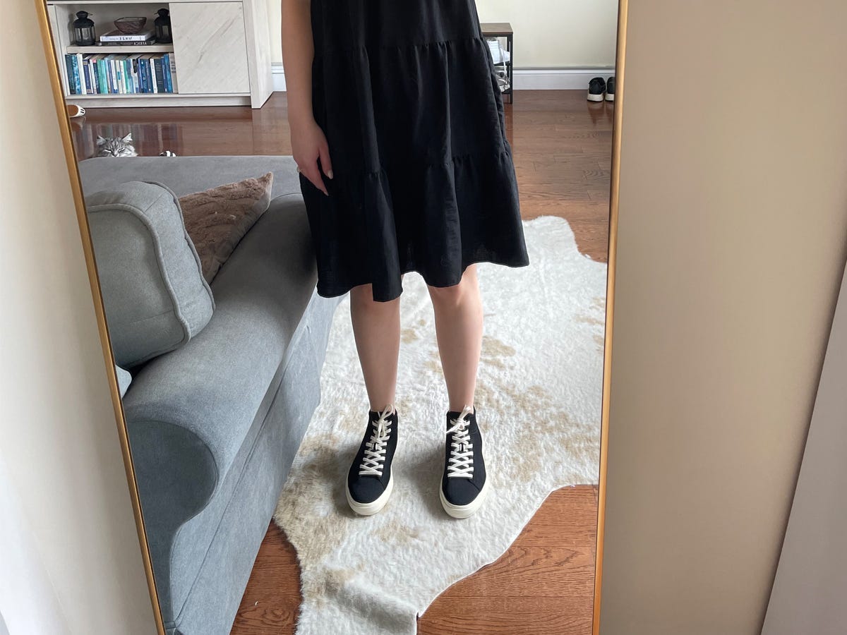 I really appreciate a pair of classic high-top sneakers, since they offer a bit more support than low tops for when you’re walking or standing for long periods of time. Rothy’s version was exceptionally comfortable thanks to the knit upper and stretchy laces. These hugged my feet but weren’t too tight, even at the top.