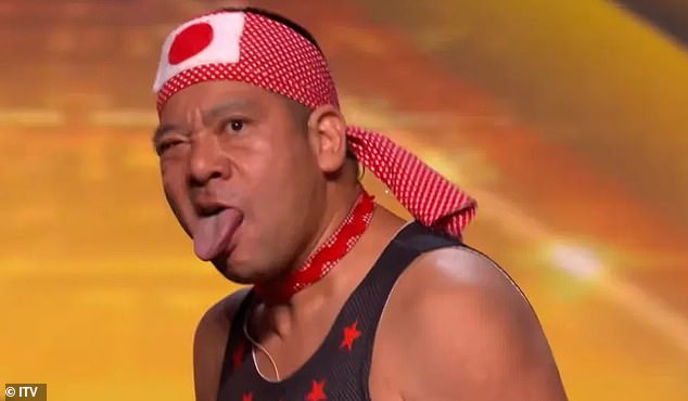 The Golden Buzzer was awarded to Mr Cherry, a ‘strongman’ act from Japan. His unusual act began with him opening a tightly sealed jar of pickles before going on to crush cans by sitting on them and open wine bottles using his backside.