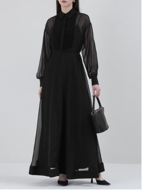 Women Black Miiaah Printed Bib-Detail Maxi Dress: Striking and refined, the Ted Baker black dress is a dramatic statement piece for elegant evenings. Crafted from pure polyester with a soft, sheer finish, it flows into a sweeping, floor-length silhouette. The structured woven bib detail contrasts beautifully with the fluid fabric, while the spread collar, concealed button front, and voluminous long sleeves add tailored polish.