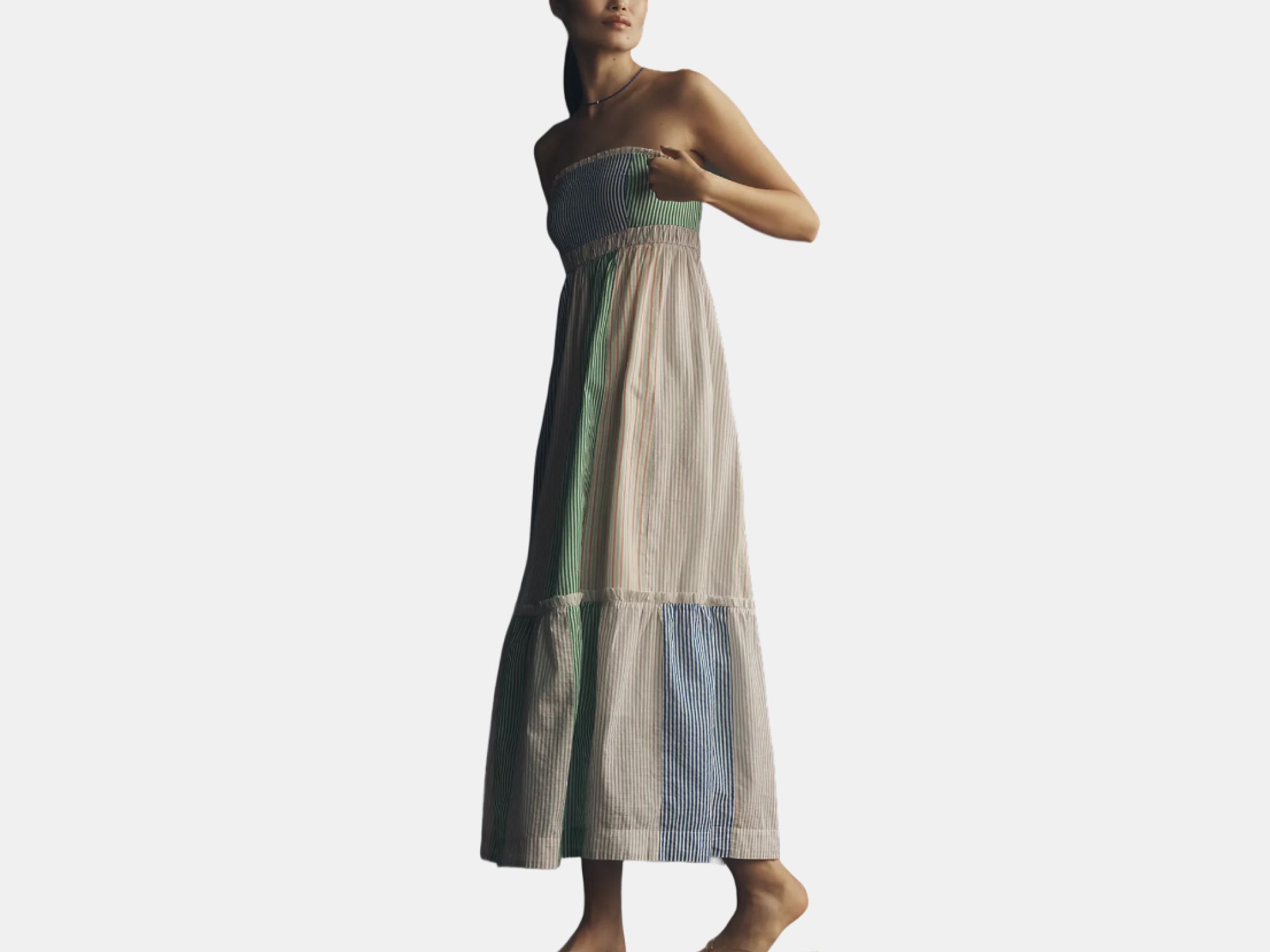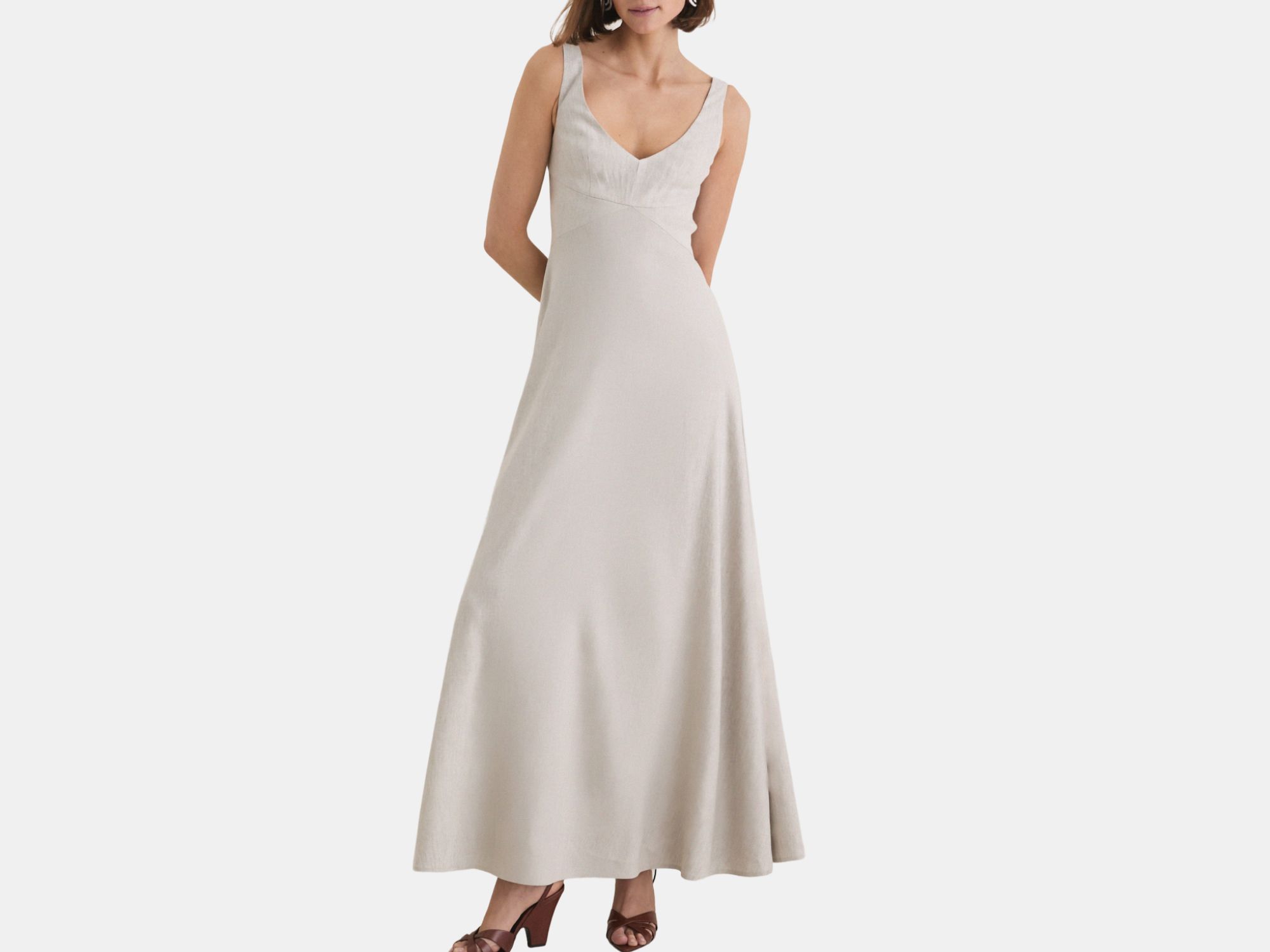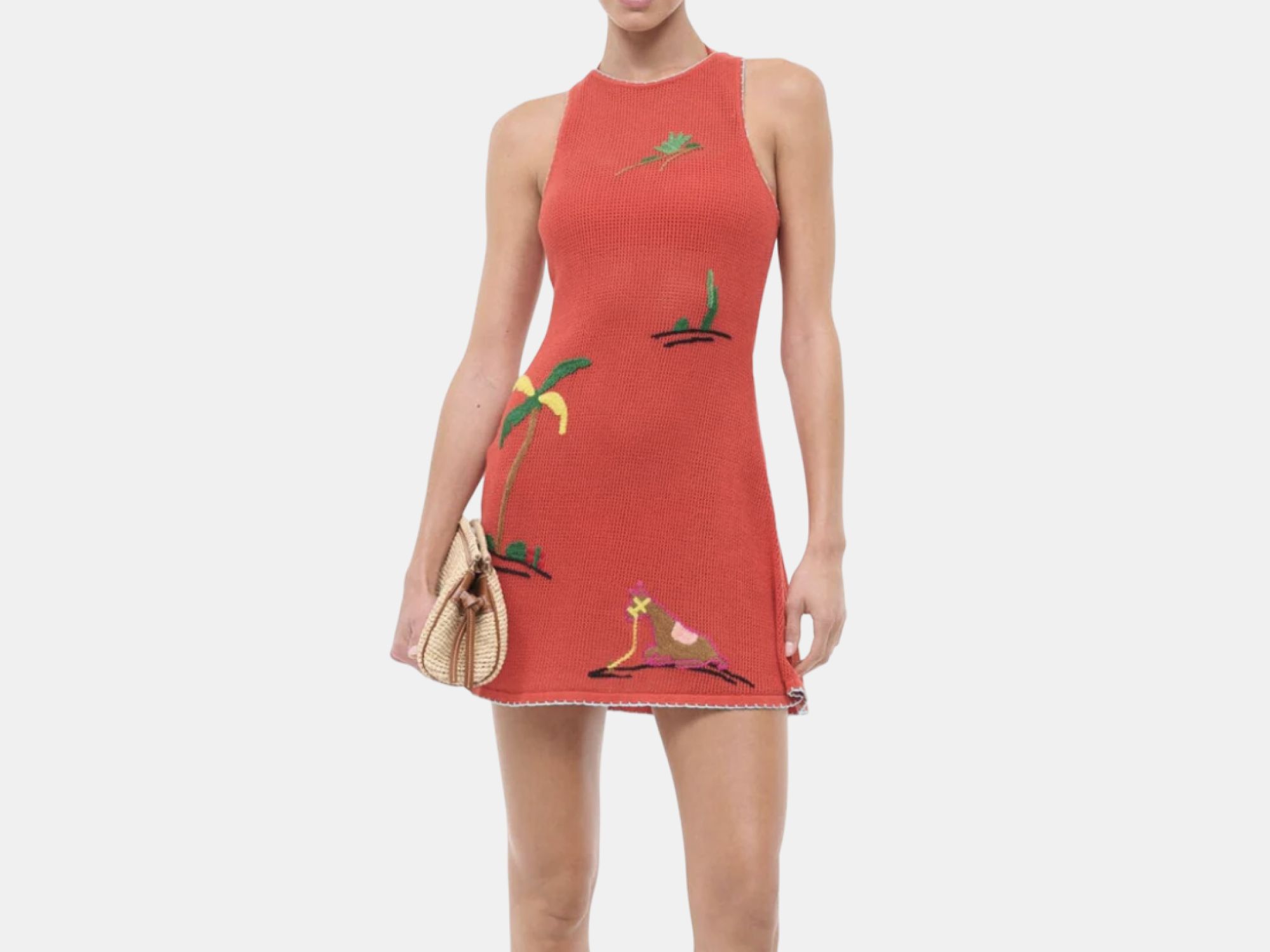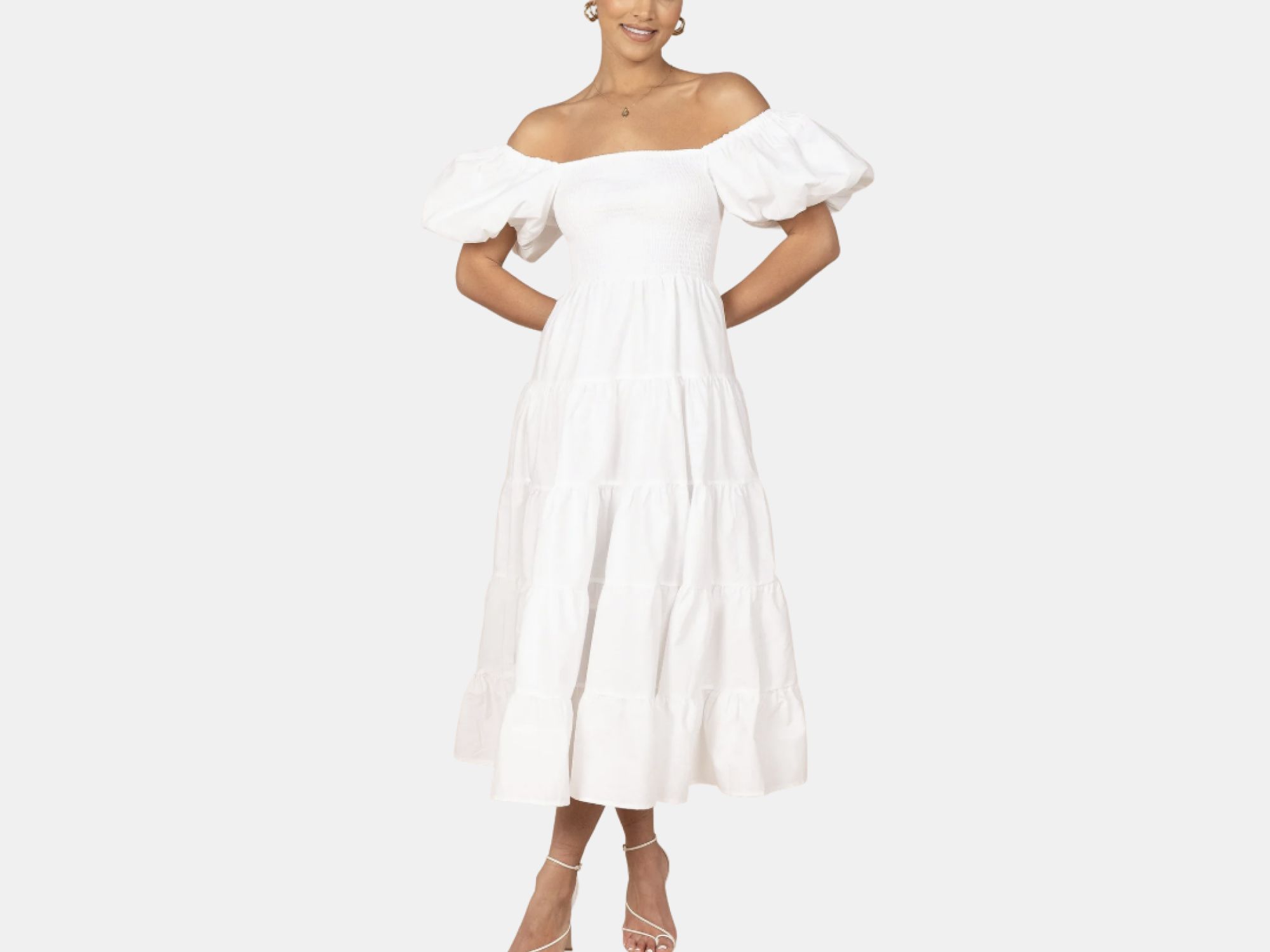 Still, options abound: The Jessalyn silk dress from Reformation is an easy, lightweight number you can dress up or down, while the Anthropologie satin slip keeps things simple but still stylish. If you want something with more impact, the Camilla off-the-shoulder mini leans bolder with a multicolored print and rhinestone embellishments, while the Tuckernuck Melina maxi dress offers a softer alternative with a flowy A-line silhouette and tonal floral embroidery—well-suited to outdoor dinners or dressier plans.
