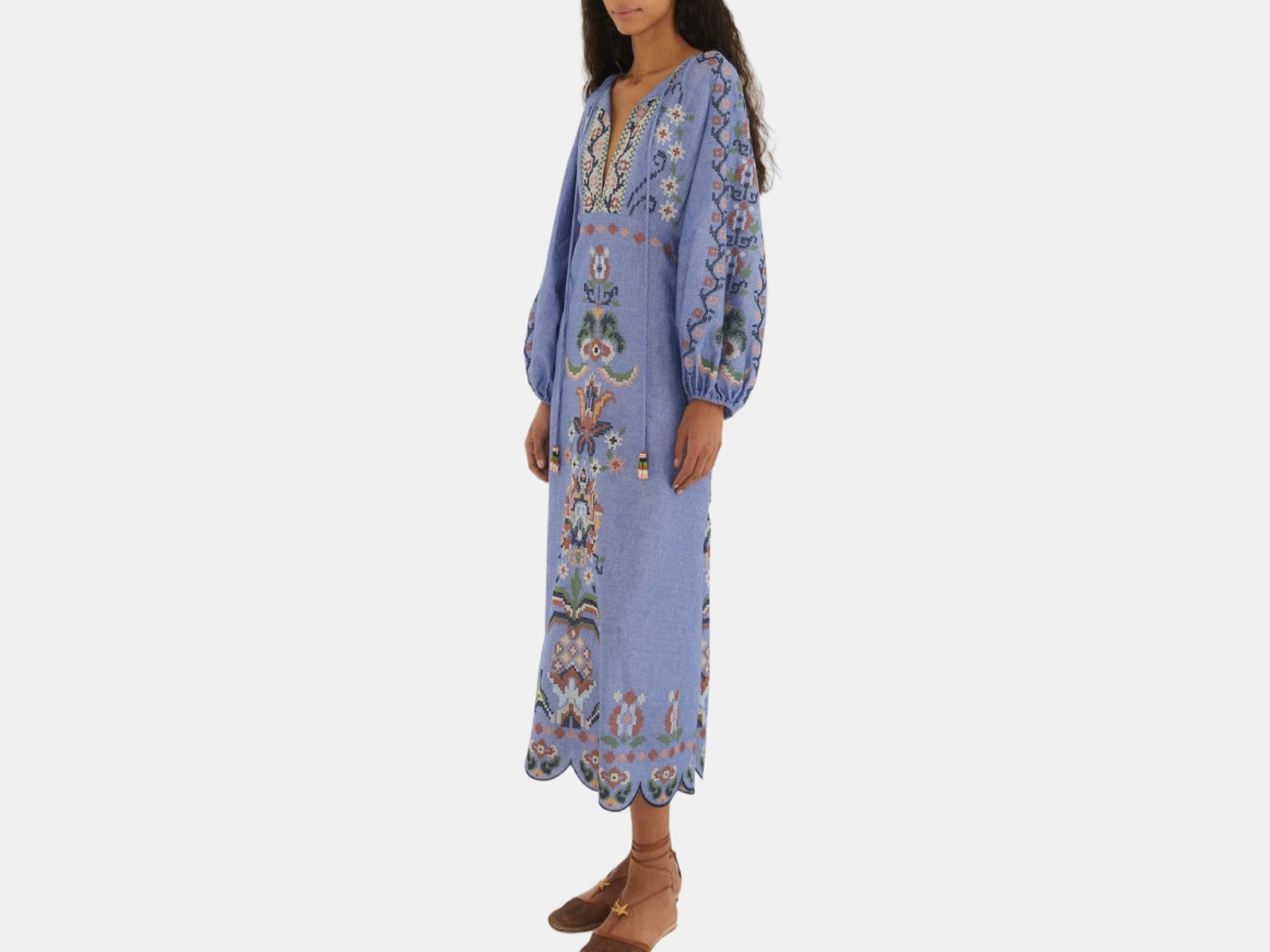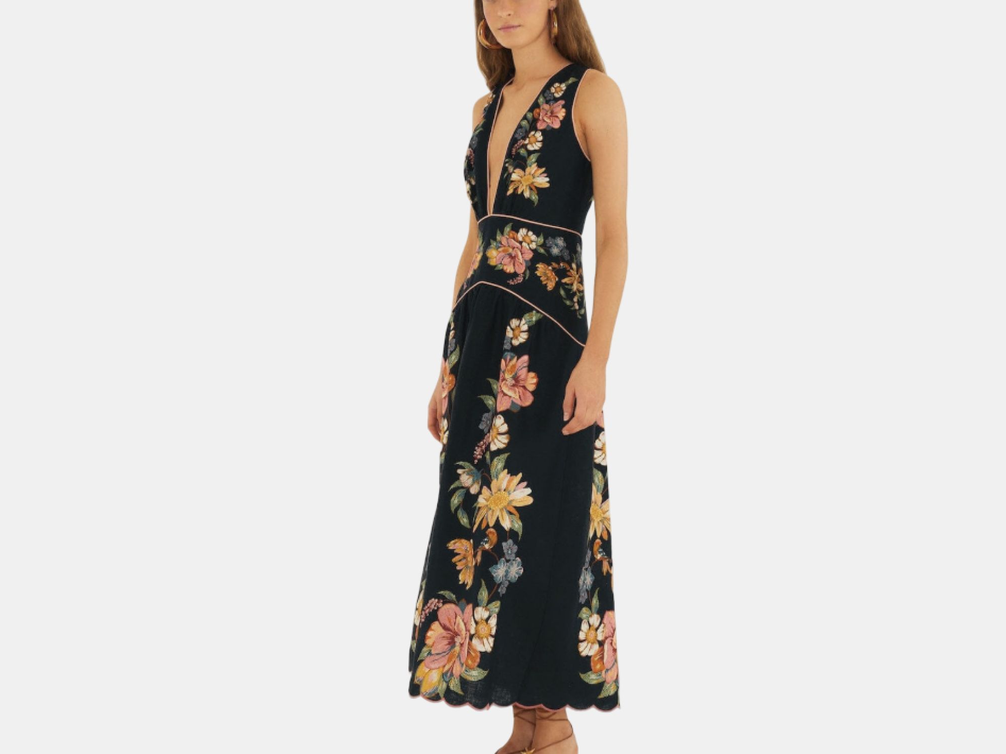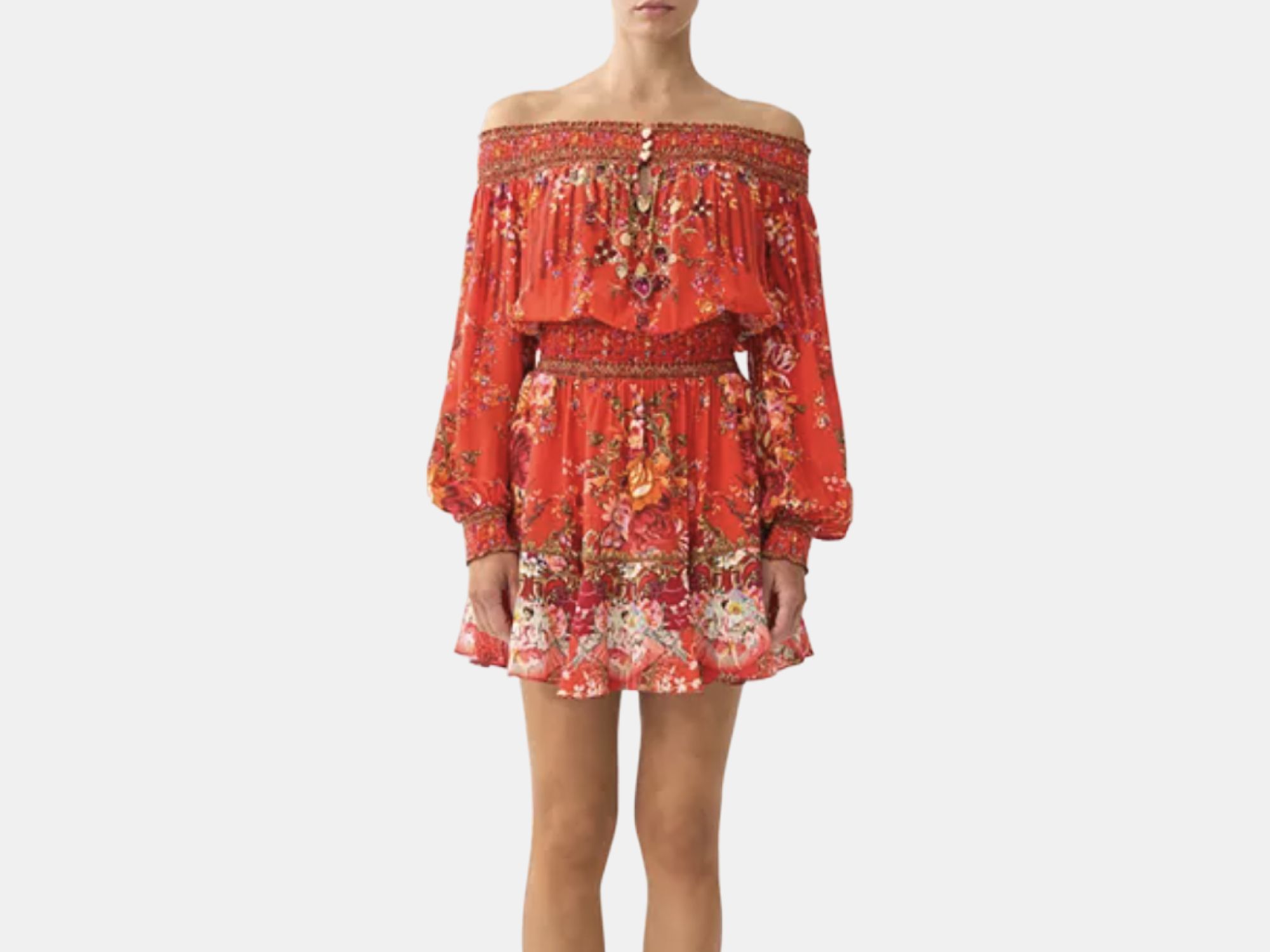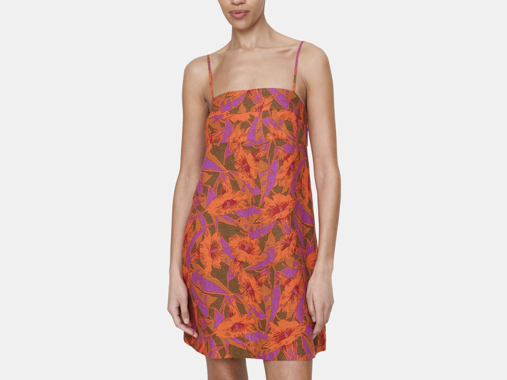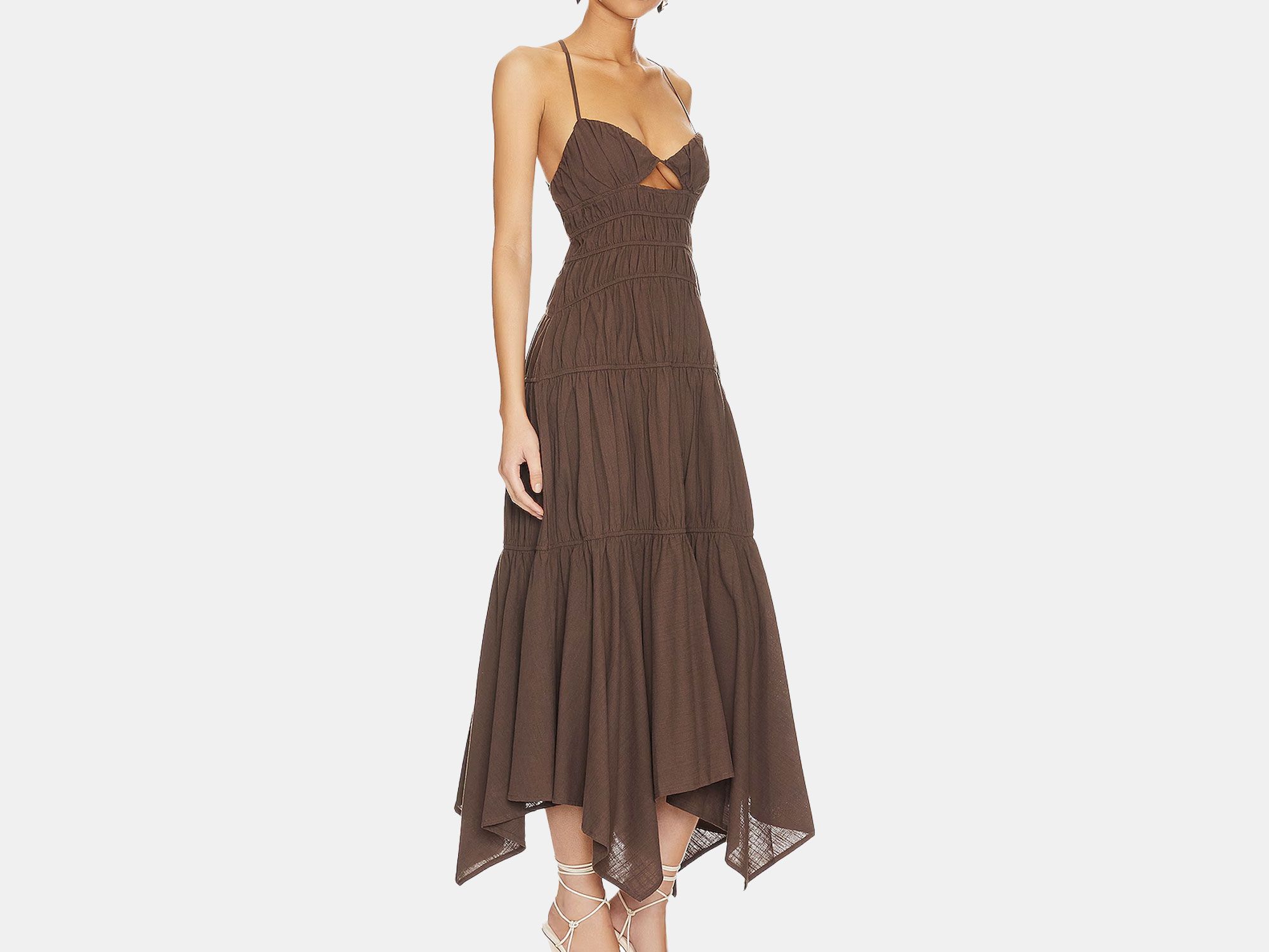 Still, options abound: The Jessalyn silk dress from Reformation is an easy, lightweight number you can dress up or down, while the Anthropologie satin slip keeps things simple but still stylish. If you want something with more impact, the Camilla off-the-shoulder mini leans bolder with a multicolored print and rhinestone embellishments, while the Tuckernuck Melina maxi dress offers a softer alternative with a flowy A-line silhouette and tonal floral embroidery—well-suited to outdoor dinners or dressier plans.