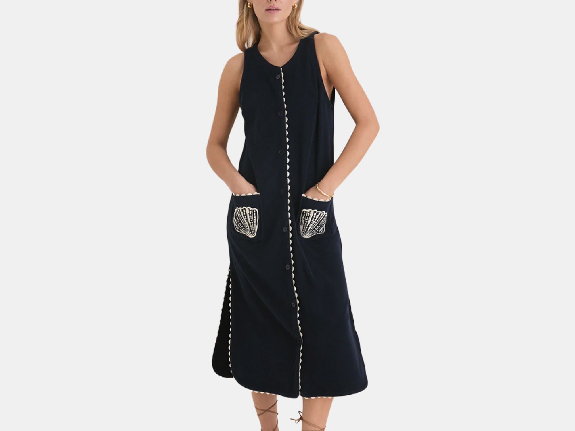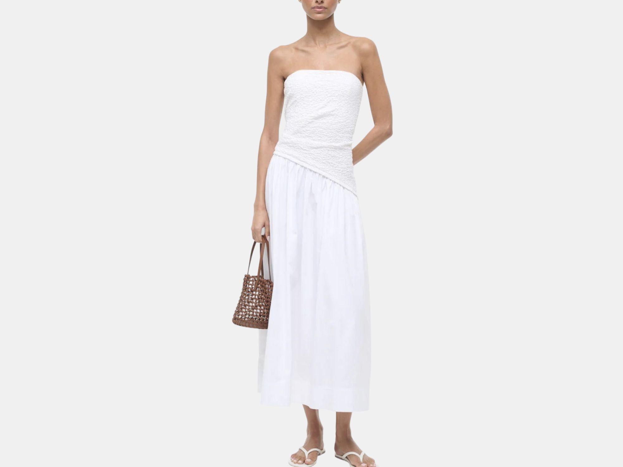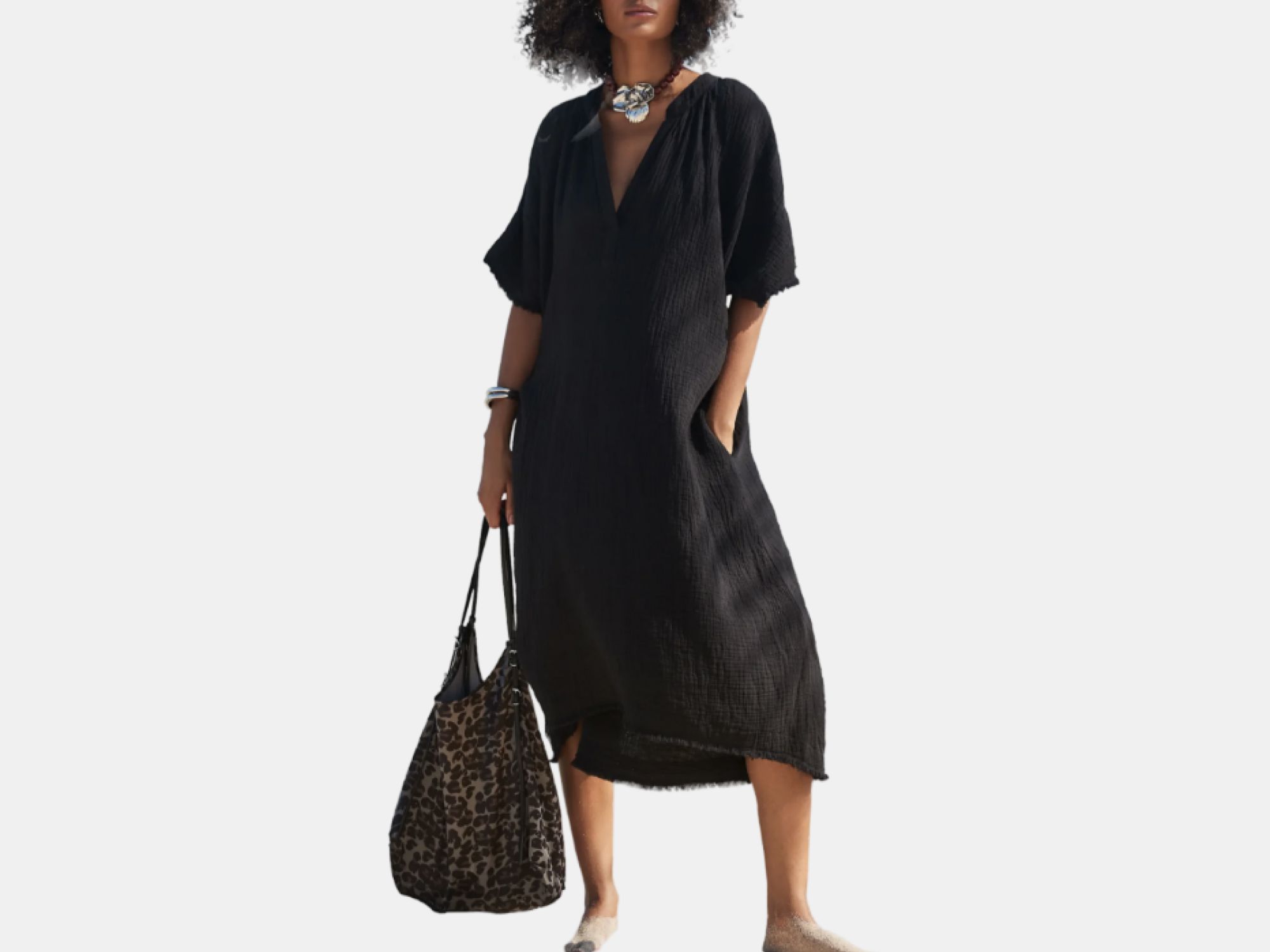Getting dressed for the beach or pool should take as little effort as possible—but that doesn’t have to mean sacrificing style. Look for pieces you can throw on over a swimsuit and wear straight to lunch or a walk into town. Left on Friday’s maxi-length Getaway shirt dress fits that brief, with a lightweight, quick-drying fabric that works from morning swims to casual brunches. Staud’s Marea dress reads more elevated, with a sharper silhouette and bold design that goes beyond a typical cover-up.