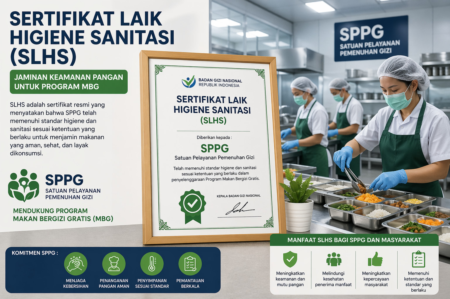 “Kami mendorong seluruh SPPG untuk segera mengurus SLHS agar layanan yang diberikan benar-benar aman, higienis, dan layak dikonsumsi,” tambahnya.