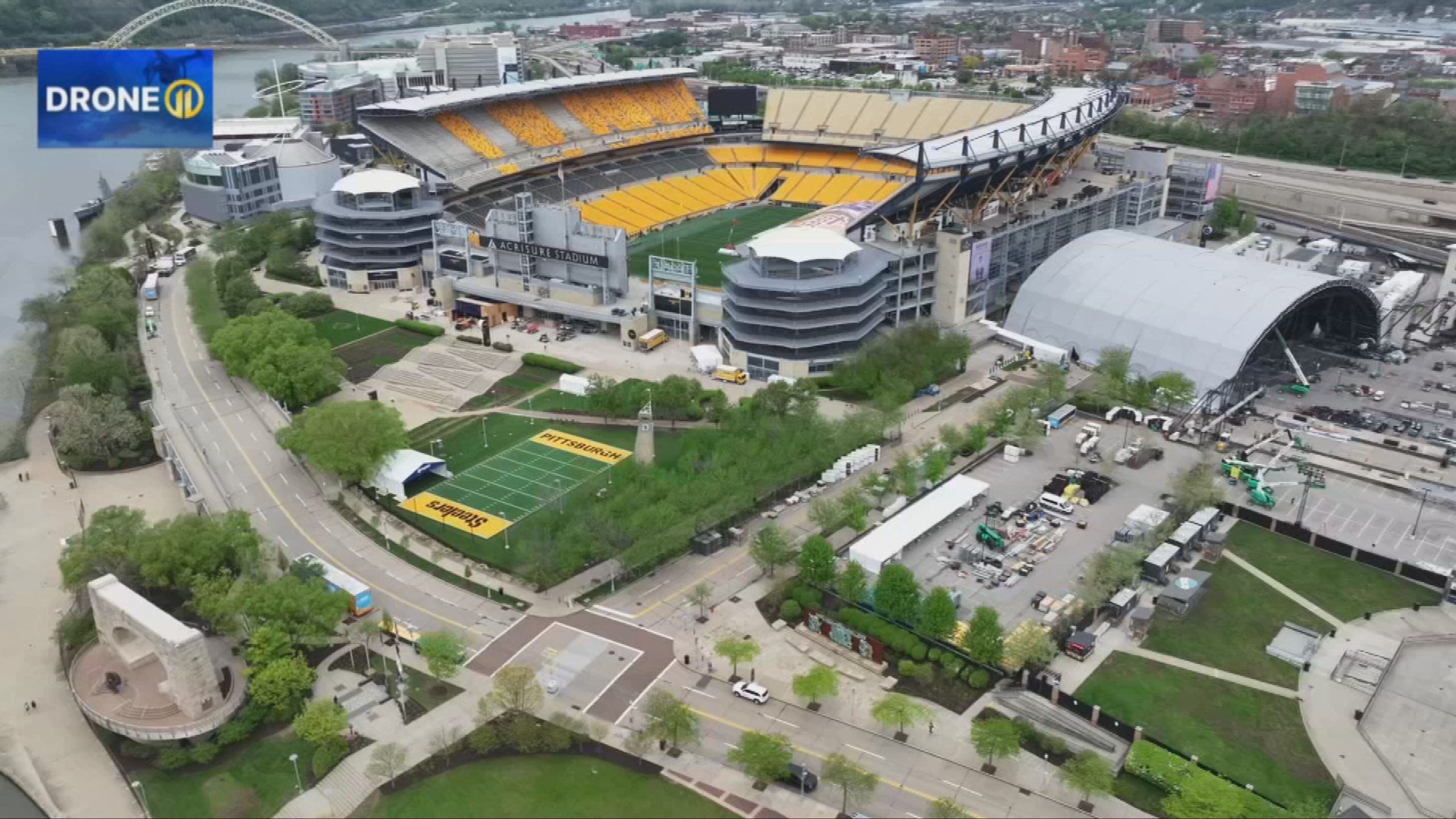 As the NFL Draft approaches, the city of Pittsburgh is in the final stages of preparation. The North Shore and Downtown areas are getting ready to welcome a large number of visitors for the three-day event. Crews have been seen making last-minute adjustments, with stages lit up and equipment in place near Acrisure Stadium. While access to some areas is already limited, the atmosphere remains relatively calm for now.