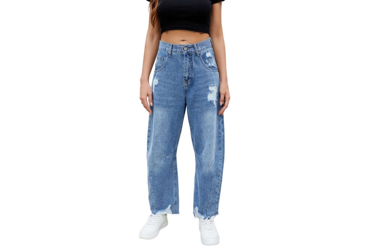 • Allimy Distressed Baggy Barrel Jeans