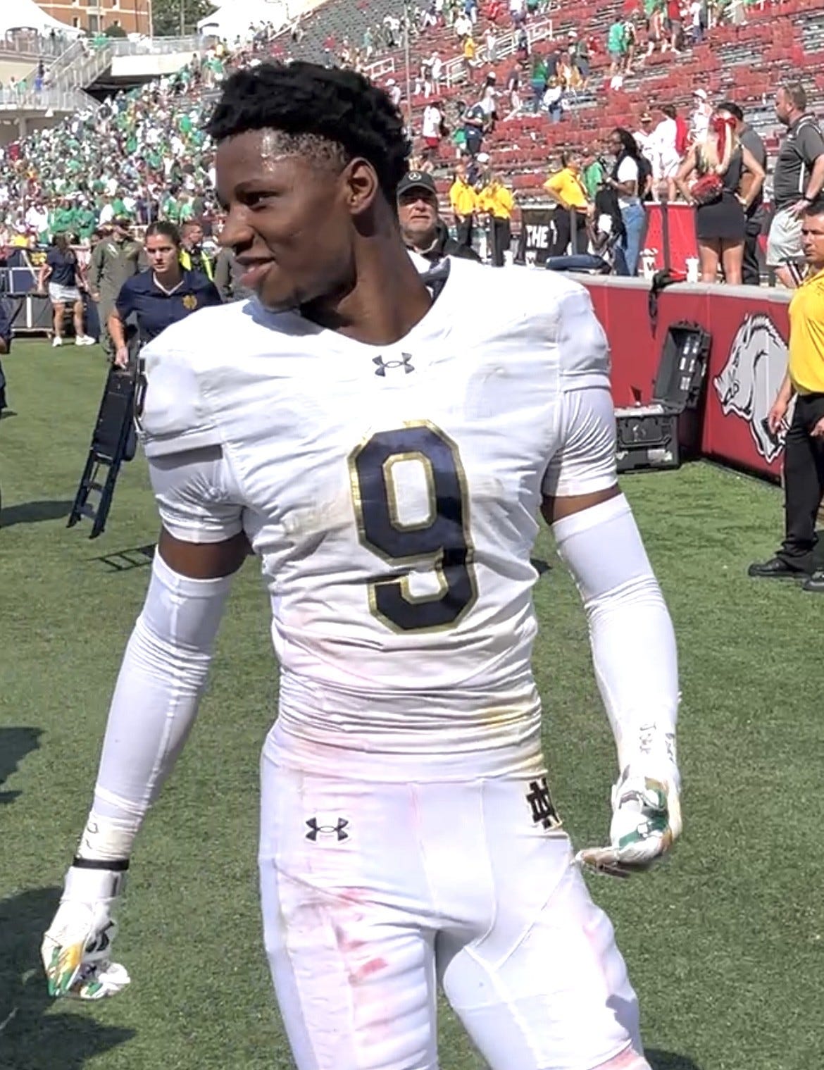 Former Notre Dame defensive backs coach Mike Mickens was the first person on staff that Johnson told “when I did know I had my daughter on the way.” A girl dad himself, Mickens offered valuable advice that helped Johnson process those life changes in his first fall as a college freshman. Irish coach Marcus Freeman, who became a father during his Ohio State playing career, also set Johnson at ease.