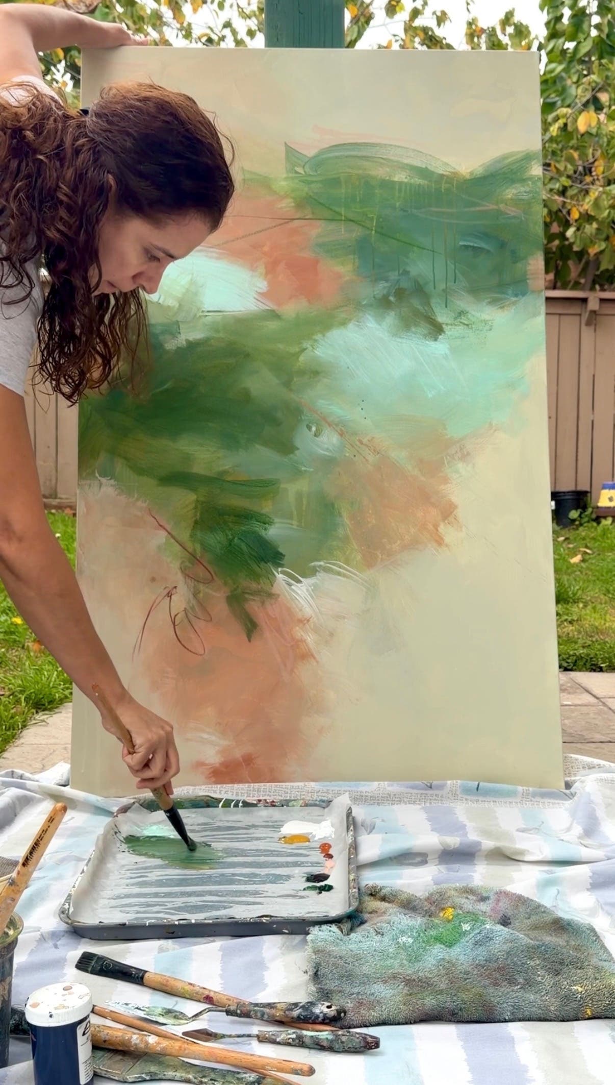 Preciado’s artistic journey began when she moved to Spain nearly 20 years ago, seeking a creative outlet. During that time, she enrolled in community oil painting classes while her husband served in the military. “I just fell in love with the feeling of creating something and making something out of nothing,” she explained. Now working primarily in acrylics, she describes her style as expressive, creating abstract landscapes inspired by nature. “I’m an abstract nature painter — or I like to say a nurture painter — because that’s the way the landscape and the outdoors make me feel,” she said. “It gives me a nurturing sense of freedom and joy and calm and love.”