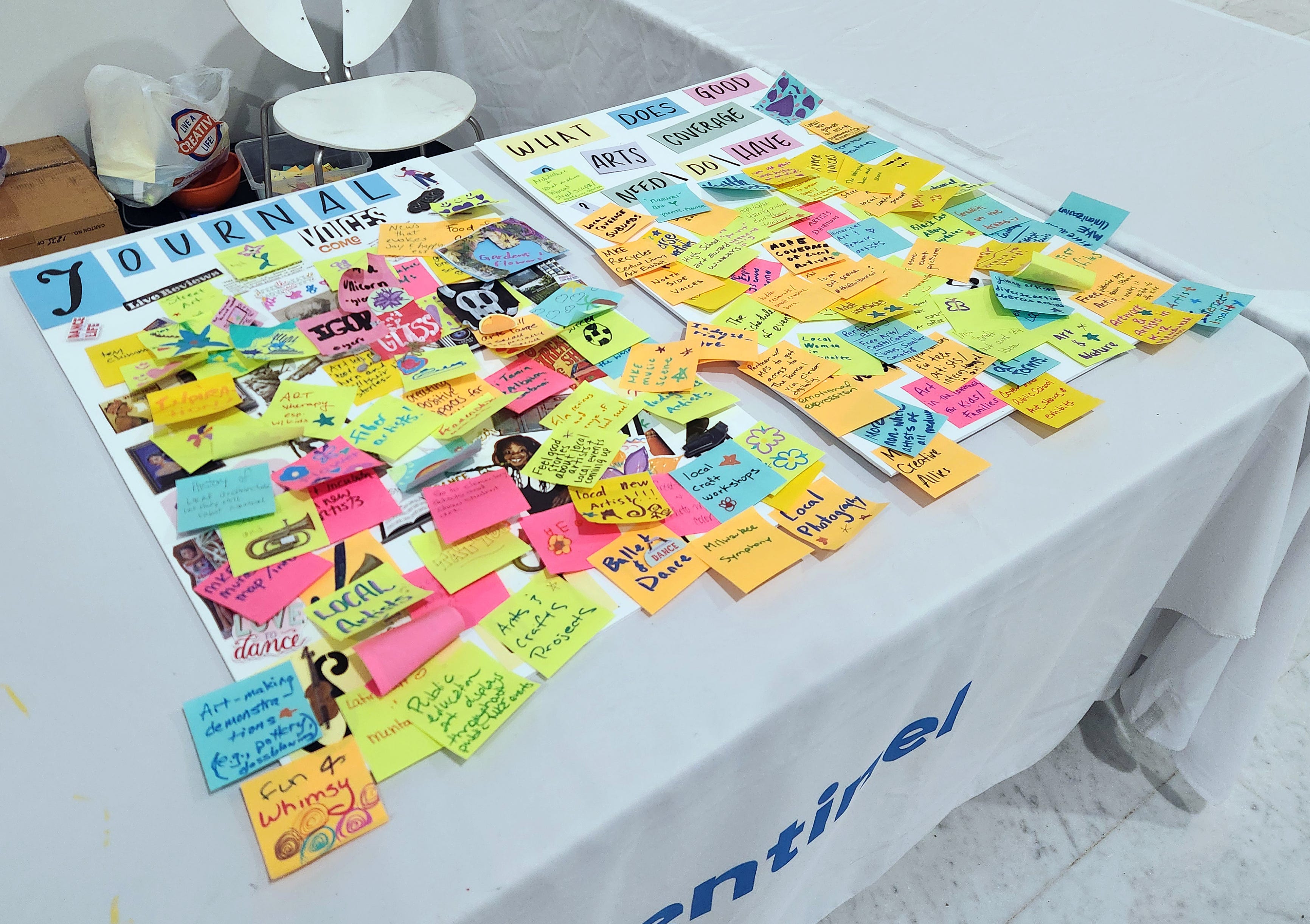 Hundreds of attendees contributed to the arts section’s vision board by writing sticky notes and drawing pictures. They expressed what they believe good arts coverage should include, what it currently has, and what it needs. Additionally, those who couldn’t attend the event responded to a digital survey, offering insights on how the arts coverage could be improved.