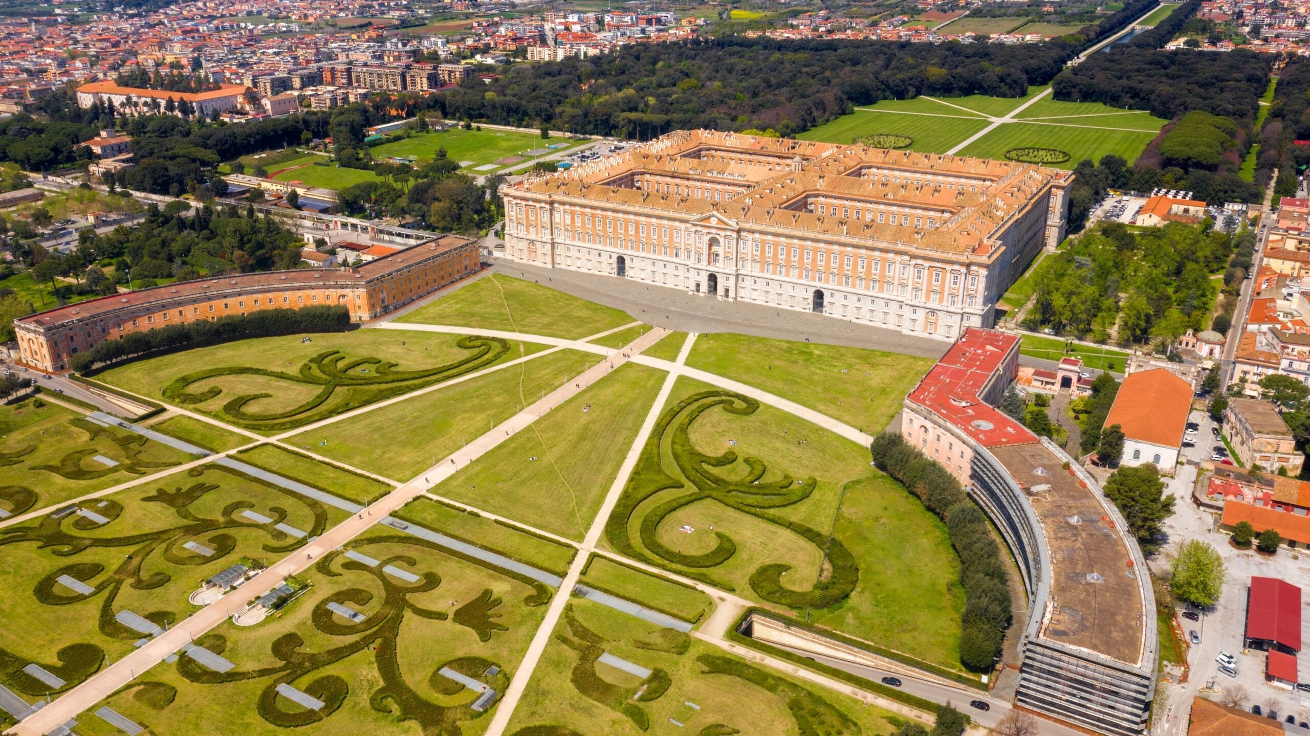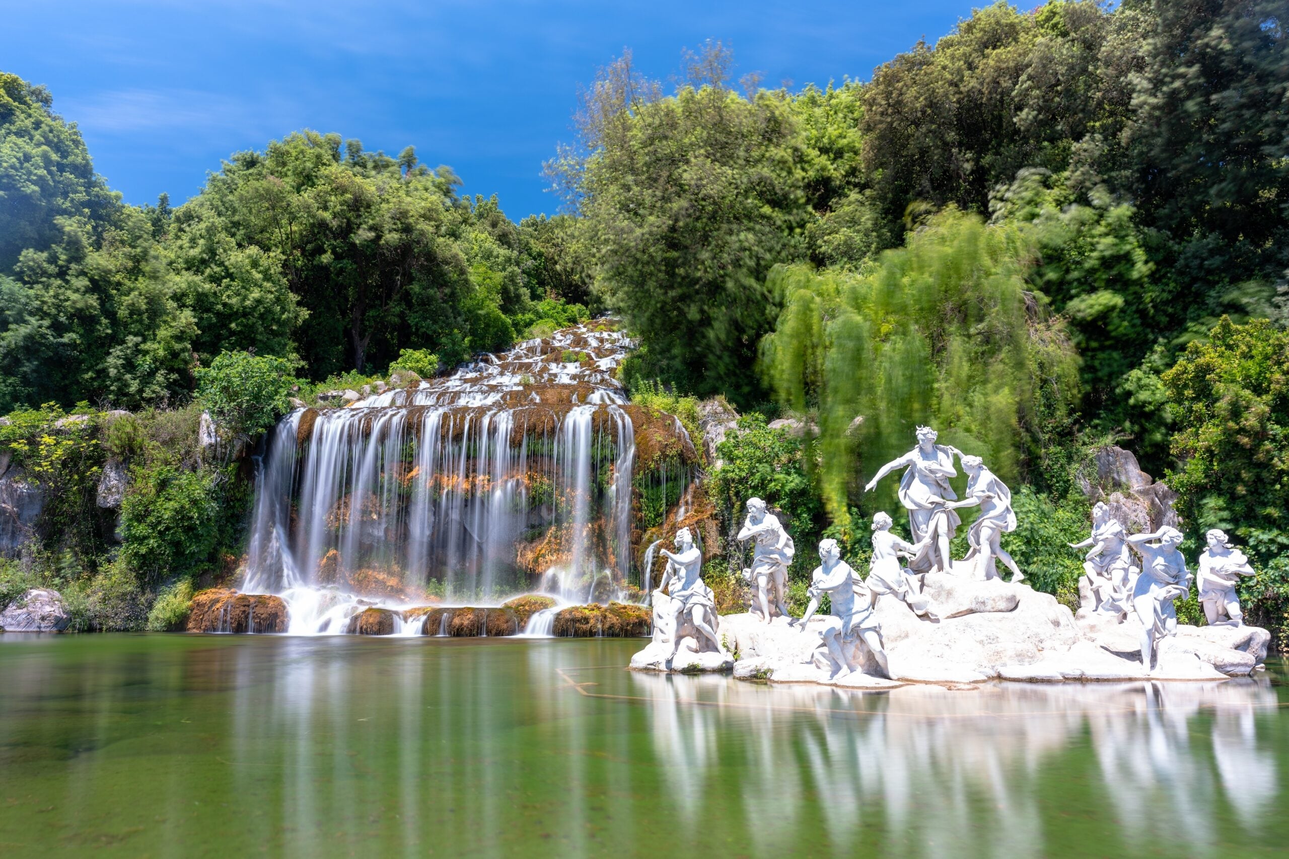Outside the palace, the gardens offer a breathtaking panorama that complements the grandeur of the building itself. Designed by Luigi Vanvitelli, these gardens feature basins, fountains, and geometric pathways leading to an impressive artificial waterfall. The waterfall is supplied by a 38-kilometre-long aqueduct, a remarkable engineering feat for its time.