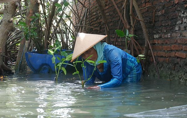 Di tengah kondisi tersebut, Mak Jah memilih tetap tinggal dan mulai menanam mangrove secara mandiri di sekitar rumahnya. “Saya mulai tanam sedikit demi sedikit. Karena kurang bibit, saya buat sendiri. Alhamdulillah berkembang. Ada juga yang kirim dari jauh,” katanya.